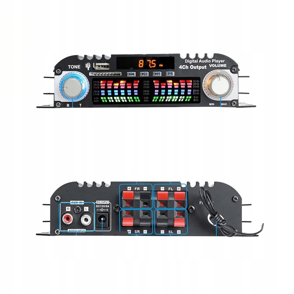 ✔️Підсилювач пропонує додаткові функції, які покращують враження від прослуховування, наприклад регулювання гучності та регулювання низьких і високих частот. Загалом, цей підсилювач із TF-картою, FM-радіо, функцією USB і 4-канальним з’єднанням Bluetooth є комплексним аудіорішенням, яке надає вам кілька варіантів насолоджуватися улюбленою музикою.