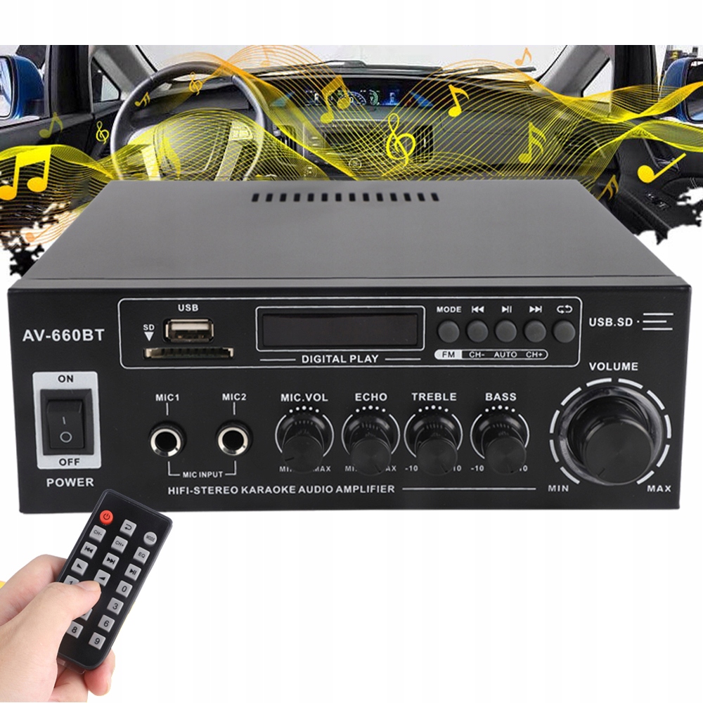 HIFI АВТОМОБІЛЬНИЙ ПІДСИЛЮВАЧ ПОТУЖНОСТІ ЦИФРОВИЙ АУДІО СТЕРЕО 2-КАНАЛЬНИЙ AV-660BT