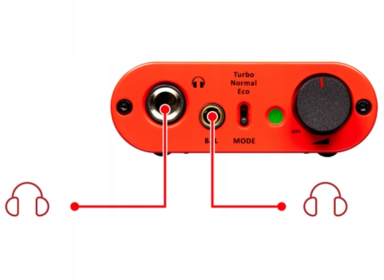 3 режими роботи (Turbo, Normal і Eco) дозволяють ідеально регулювати потужність відповідно до типу підключених навушників.