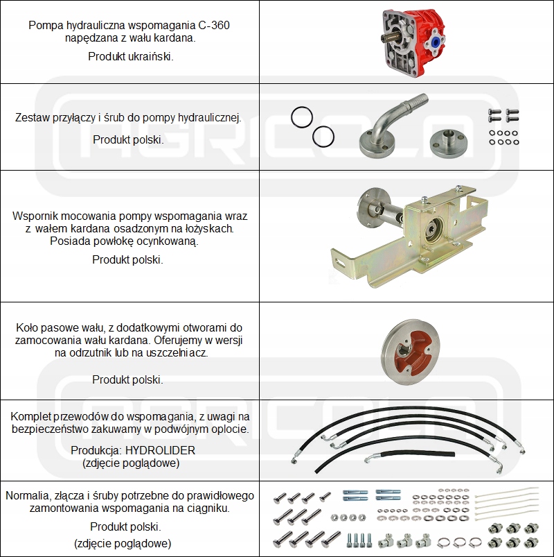 Комплект призначений для установки на трактори URSUS C-360 і C-355 з плоским або круглим переднім мостом.
