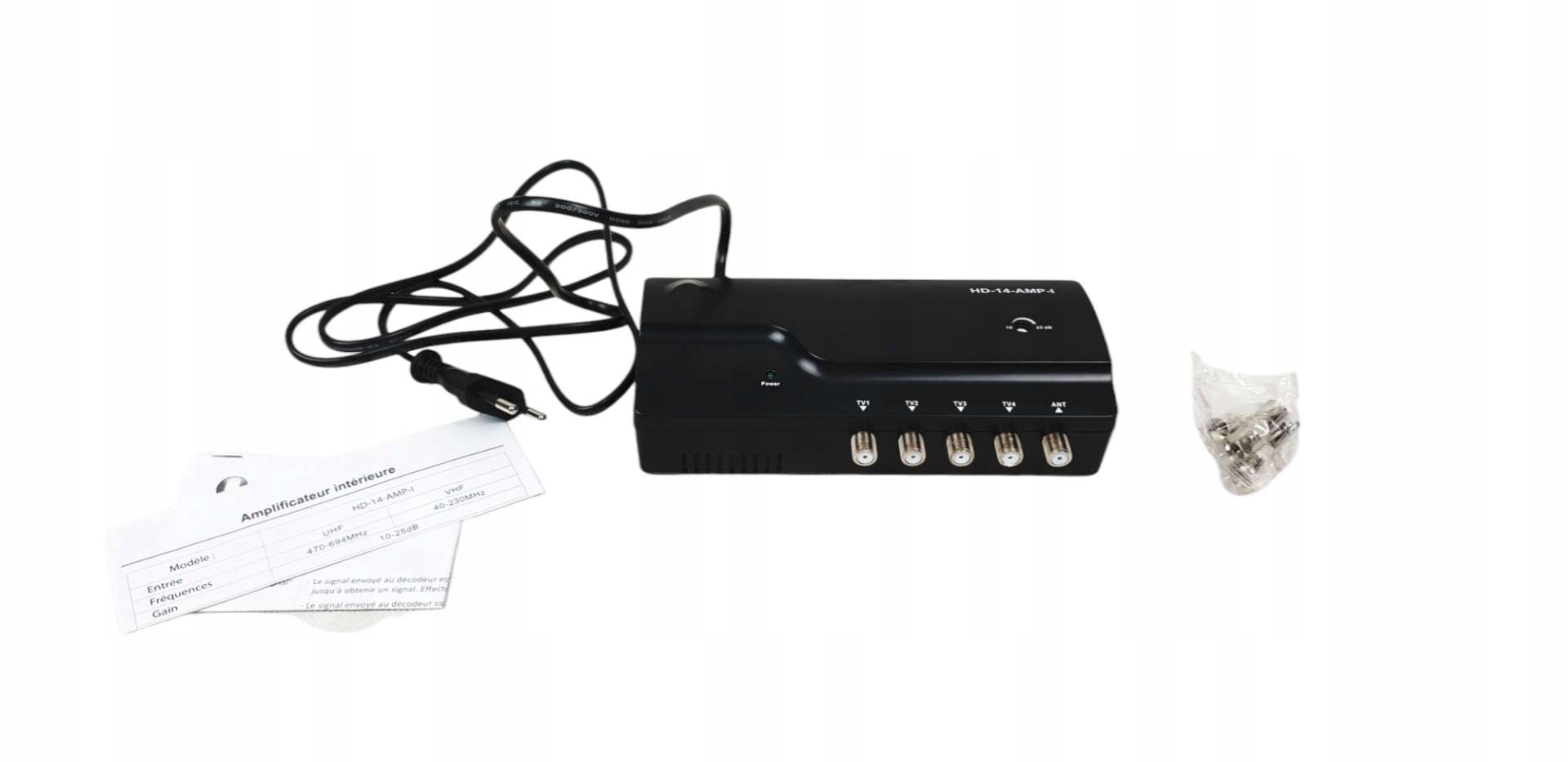 • Посилює та розподіляє сигнал DVB-T HD UHF на 4 телевізори, регульоване посилення до 27 дБ на кожному виході. Налаштування якості зображення виконується на вході (усуває мозаїчний або піксельний ефект) і регулює продуктивність