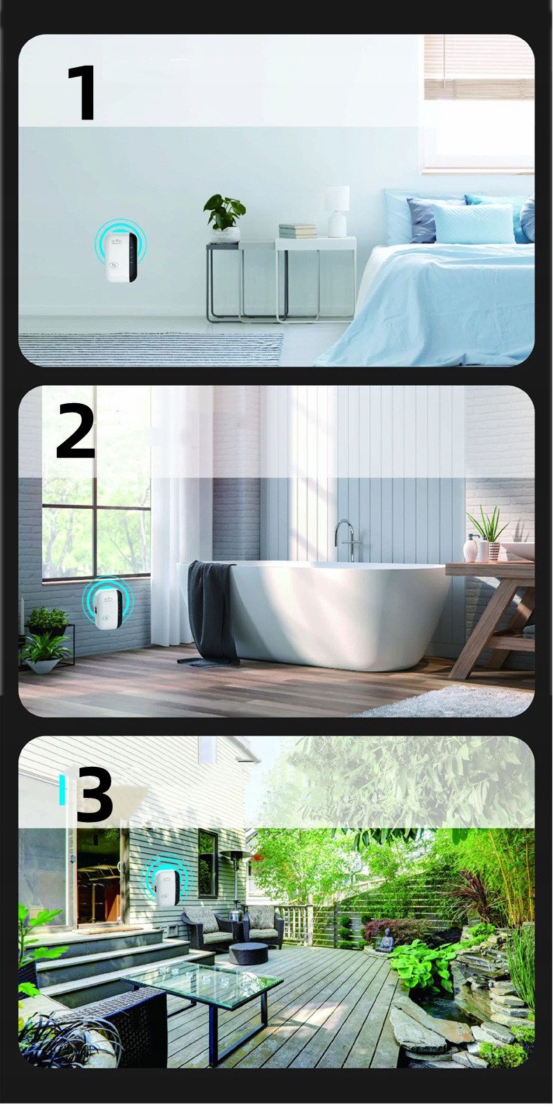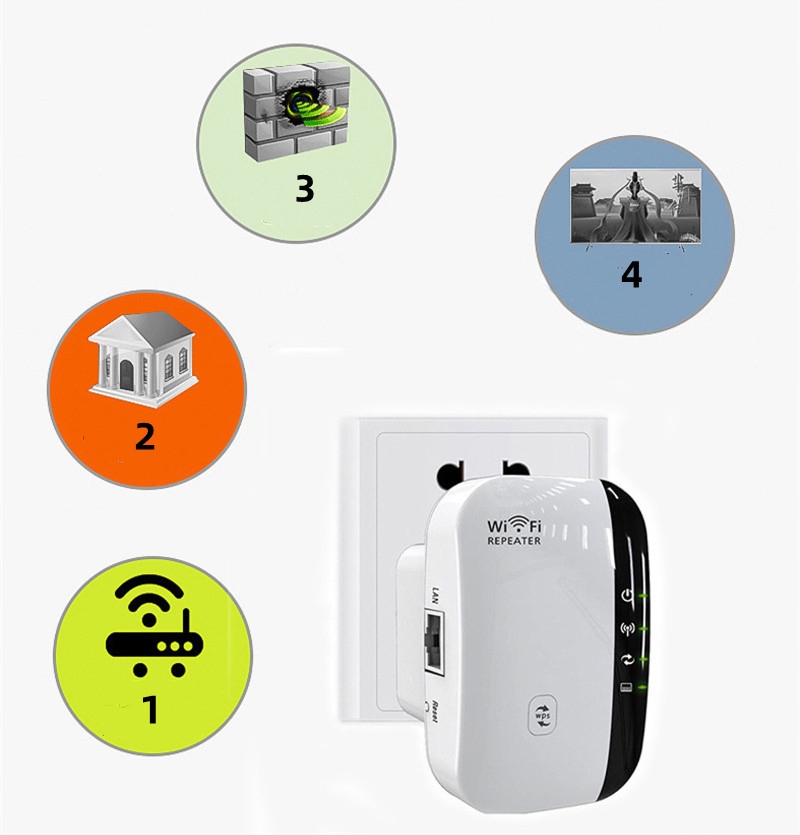 Режим ретранслятора: від бездротового зв’язку до бездротового зв’язку: ретранслятор отримує бездротовий сигнал від оригінального бездротового маршрутизатора та повторно передає новий бездротовий сигнал, таким чином посилюючи та розширюючи діапазон. Він сумісний з усіма бездротовими маршрутизаторами (вам потрібно знати ім’я користувача та пароль бездротового сигналу) і дуже простий у налаштуванні. До виробу додається інструкція з експлуатації. Мобільні телефони, комп’ютери та планшети можна налаштувати, і всі бездротові пристрої можна використовувати за допомогою одного налаштування.