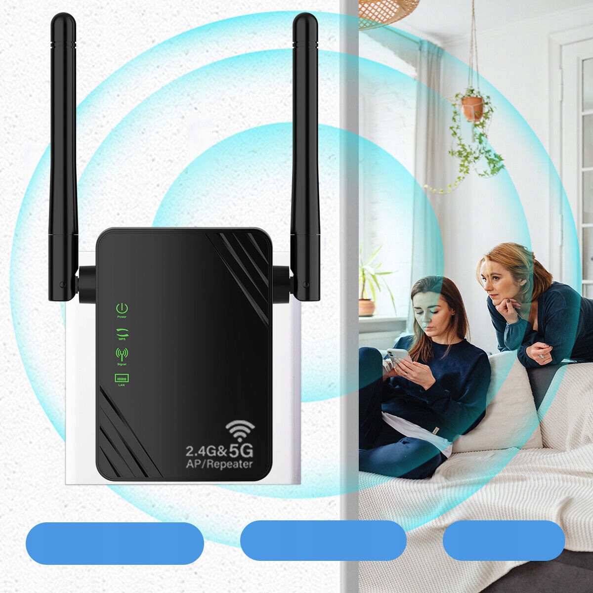 🚦🚦【4 режими роботи】Ретранслятор WiFi пропонує 4 режими: ретранслятор / точка доступу / маршрутизатор / клієнт. Працюючи в режимі підсилювача або моста, розширювач Wi-Fi може покращити ваш бездротовий сигнал і розширити зону покриття вашої мережі. У режимі точки доступу або маршрутизатора просто підключіть сусідні ігрові консолі, телевізори, комп’ютери, потокові плеєри та інші дротові пристрої за допомогою 100-метрового з’єднання, щоб отримати максимальну швидкість.