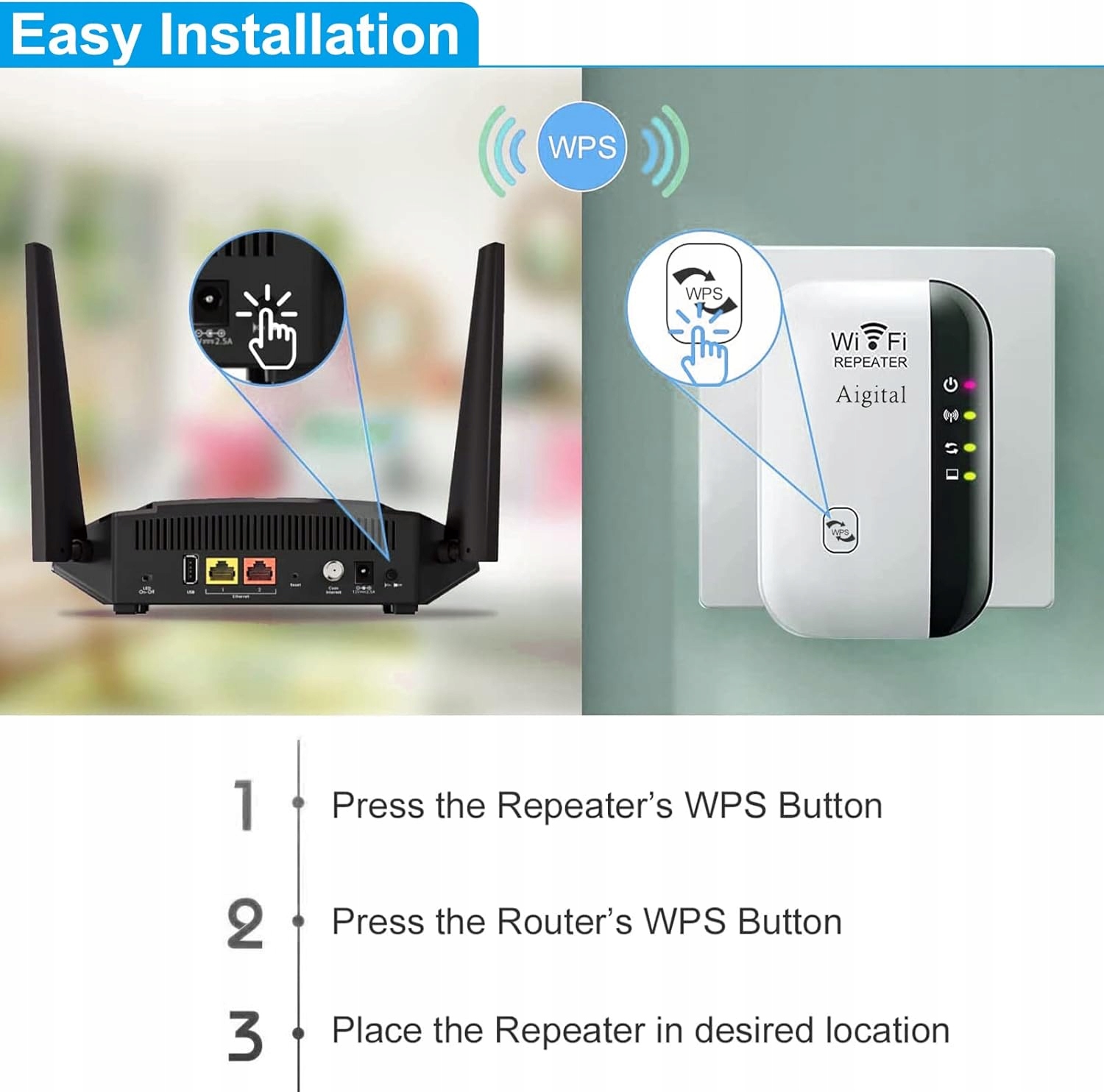 - Стабільне з’єднання – розширювач Wi-Fi універсально сумісний із 99% маршрутизаторів або шлюзів Wi-Fi, доступних на ринку. Цей подовжувач Wi-Fi відповідає стандартам безпеки.