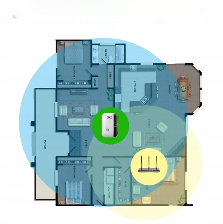 Підсилювач сигналу може допомогти вам посилити ваш Wi-Fi, подовжити сигнал на більшу відстань і усунути мертві зони Wi-Fi, щоб ви могли використовувати мережу в будь-якій частині вашого дому. Вам не потрібно турбуватися про слабкі сигнали через відстань, стіни та підлогу.