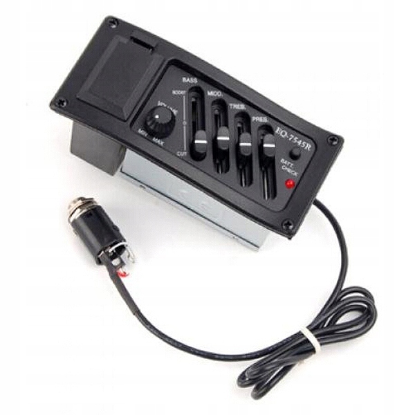 🌈 eq7545r - це професійна та практична система коректора перетворювача з 4 нитками, які можна легко адаптувати до акустичної гітари і необхідна для електрифікації та зміцнення їх звучання. Він попередньо проводиться для легкої збірки та постачається з контейнером акумулятора.