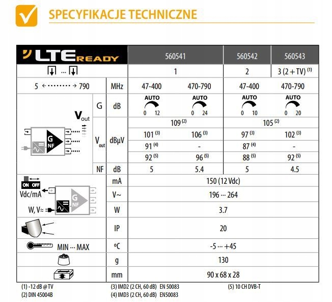 - Оснащений селективним фільтром LTE/4G і живленням через вхід для живлення попередніх підсилювачів або системи BOSS.