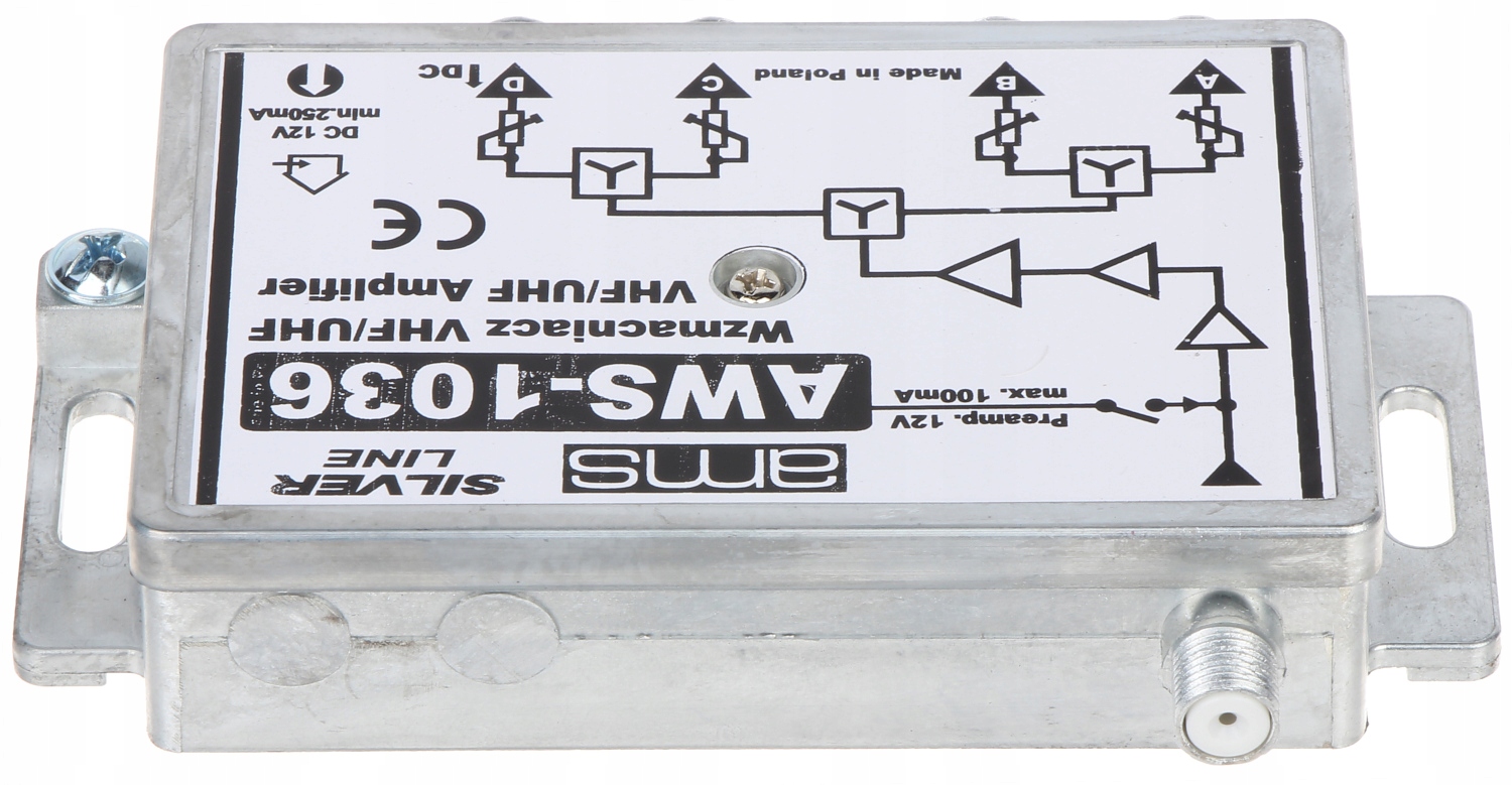 AWS-1036 призначений для посилення та розподілу телевізійного сигналу на 4 домашні антени, побудовані за допомогою смугових антен, з’єднаних кросовером. Контроль посилення дозволяє регулювати рівень сигналу в усій установці.