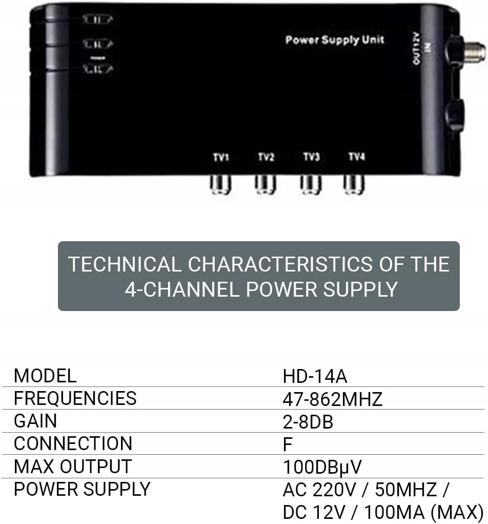підсилювача сигналу HD-лінії Kit4/ 1 + живлення 4 телевізора