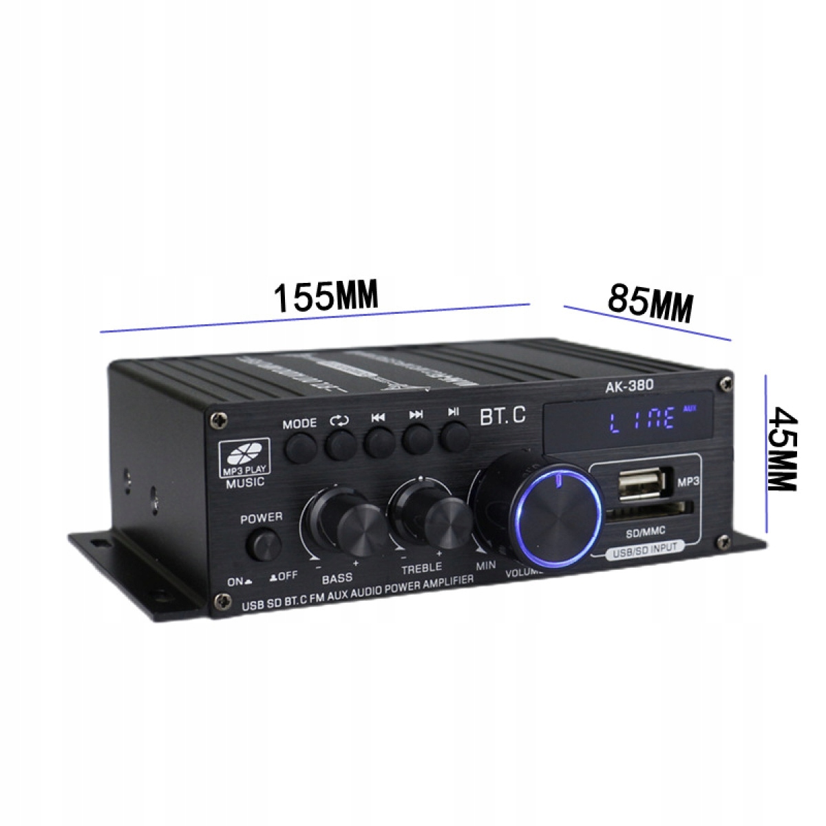 - Підсилювач потужності аудіо AK-380 простий, компактний, практичний і потужний.