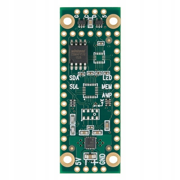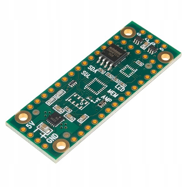 Модуль Teensy Prop Shield LC призначений для створення звукових і світлових ефектів у портативних пристроях і смарт-пристроях. одяг . Teensy Prop Shield LC містить аудіопідсилювач потужністю 2 Вт, швидкі буфери 5 В для керування світлодіодами APA102 і 8 МБ флеш-пам’яті. Модуль має такі ж розміри, як і у плат Teensy (він трохи довший для розміщення монтажних отворів і роз’ємів живлення, діодів і динаміків). Версія LC відрізняється від стандартної відсутністю датчика руху.