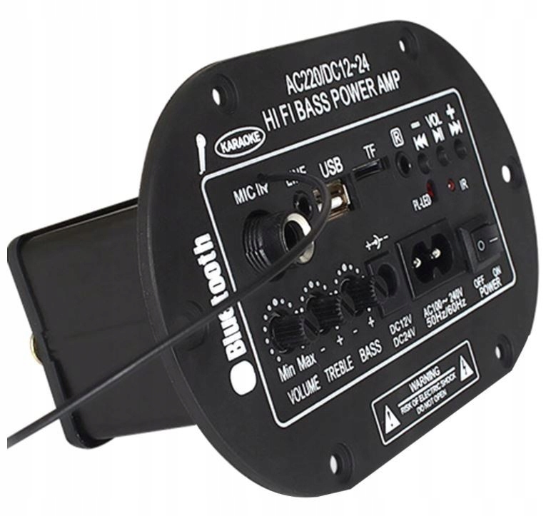 MP3-панель з підсилювачем HiFi для установки в аудіопристрій. Він дозволяє відтворювати MP3-файли з USB-накопичувача, SD-карти, іншого пристрою через роз'єм AUX і через Bluetooth. Має вбудований FM-приймач, що дозволяє приймати радіостанції в стандартному діапазоні частот. Управління модулем здійснюється кнопками і ручками, вбудованими в панель, або пультом дистанційного керування, що входить в комплект. Його можна живити від мережі змінного струму 12 В, 24 В або 240 В. Набір ідеально підходить для створення власного аудіопристрою, оснащення його всіма необхідними способами відтворення музики.