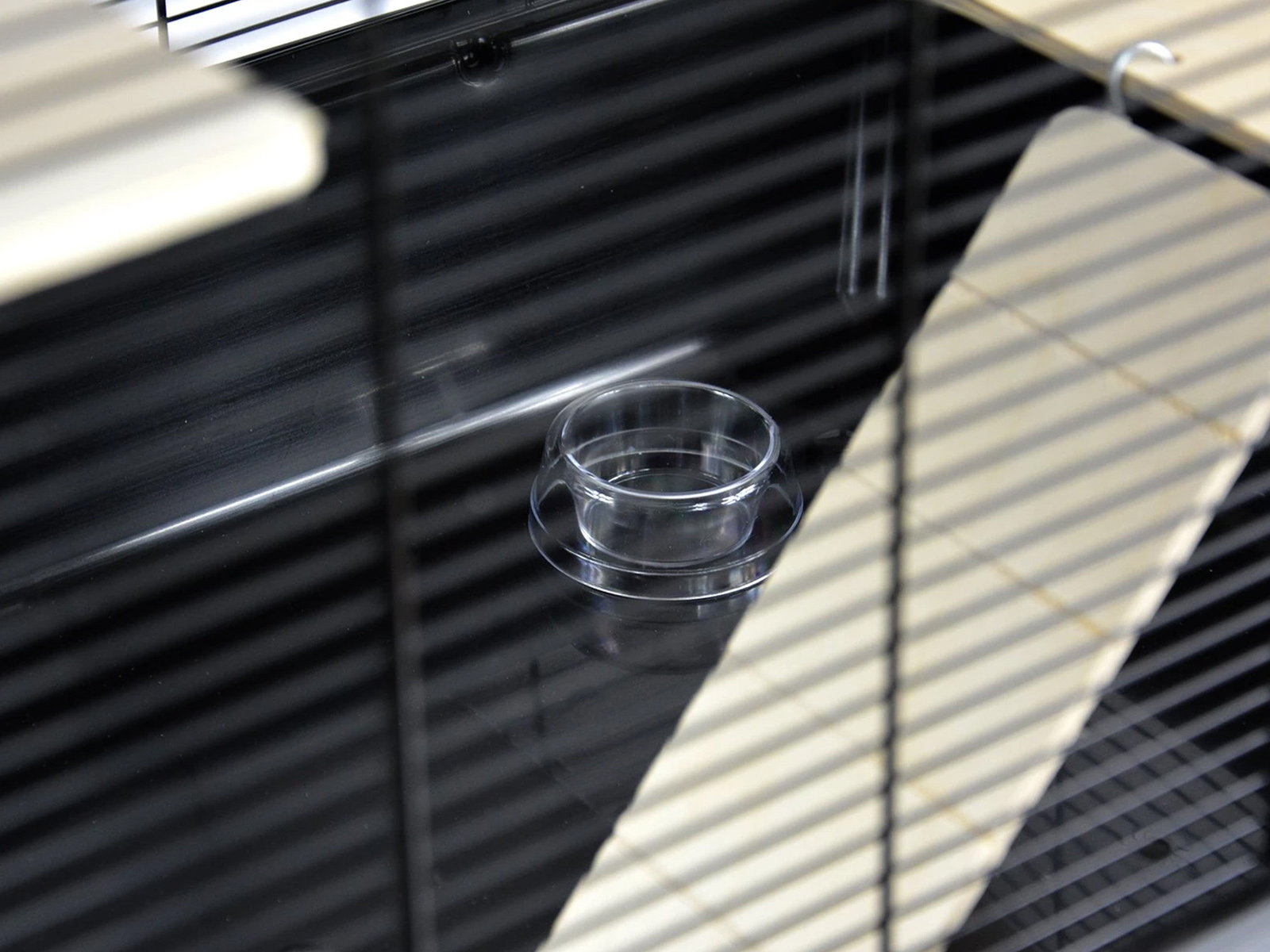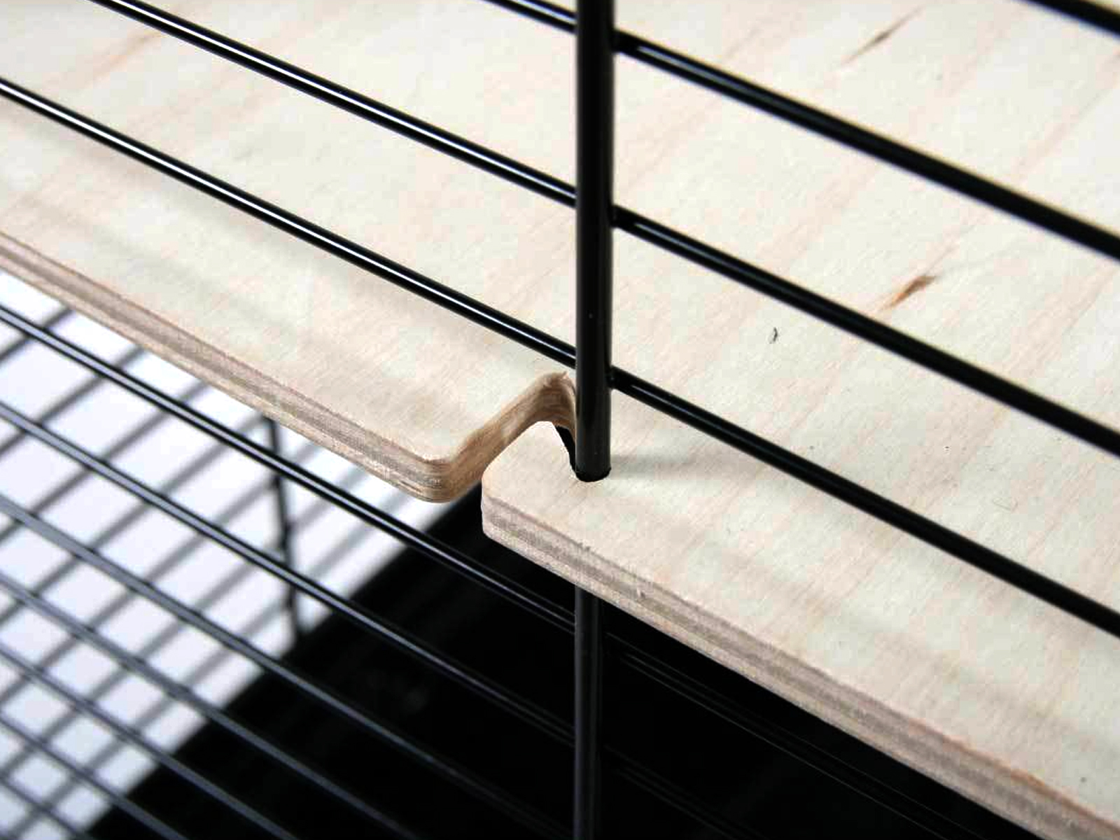 Завдяки продуманому дизайну клітка NEO Nigha має великий отвір у верхній частині, що полегшує доступ до внутрішньої частини та надзвичайно спрощує очищення. У набір входить 1 регульована підлога, яку можна адаптувати до потреб вашої тварини, драбина, дерев'яний будиночок, котушка і миска. Додатково клітка оснащена 4 ніжками, завдяки чому більш висока конструкція забезпечує тварині кращий огляд і більшу взаємодію з навколишнім середовищем. Система кріплення забезпечує стійкість всіх елементів, а відстань між планками 9 мм гарантує безпеку дрібних гризунів.