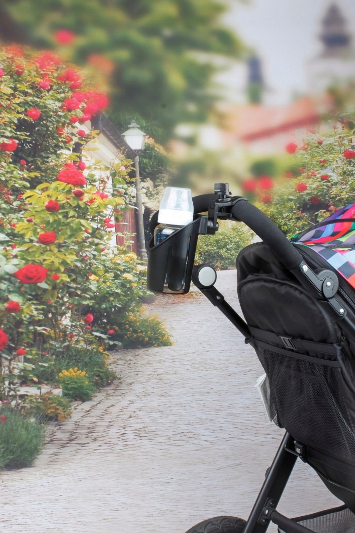 Підставка для пляшки, підходить практично для будь-якого типу коляски, а також для дитячих велосипедів, колясок для ляльок і т.д. Пластикові затискачі міцно тримають пляшку. Завдяки кнопкам можна відрегулювати ручку під потрібним кутом. Тримач легко одягати та знімати.