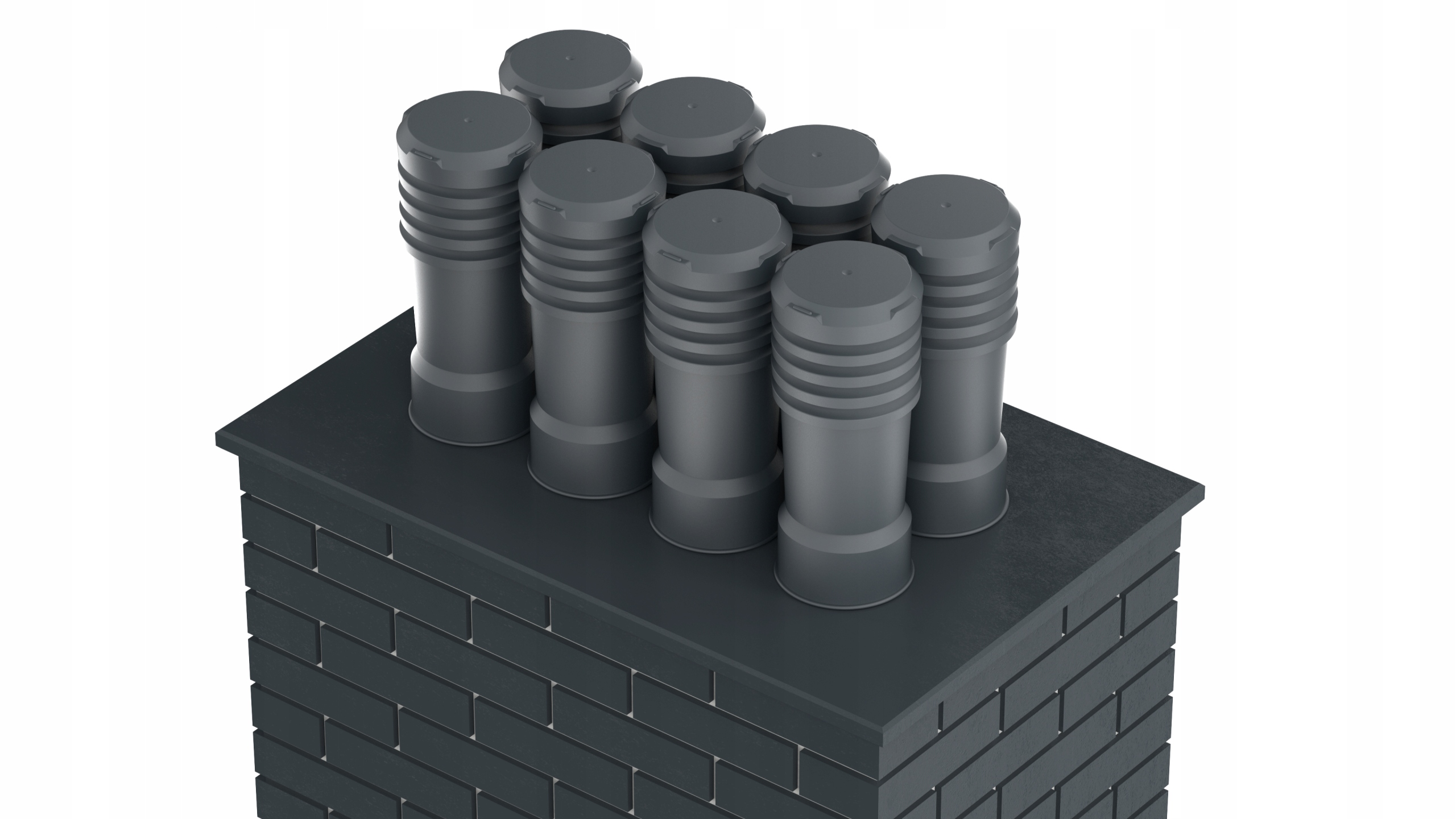 Кожух димоходу круглої форми - це завершення вентиляційного проходу з класичного вентиляційного блоку перерізом Fi 150 або квадратного розміром 140х140 в залежності від обраного виходу димоходу. .