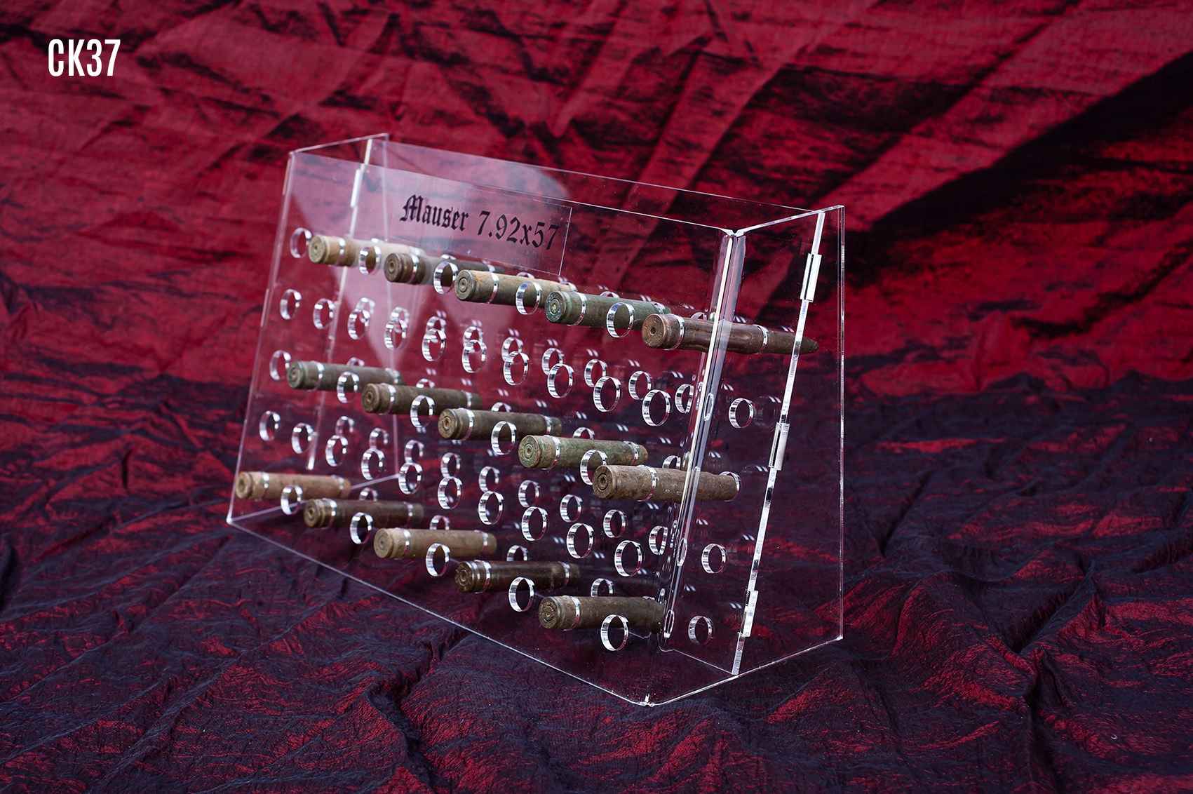 дисплей CK37 ідеально дозволяє робити вражаючу, комфортну та безпечну виставку 50 штук маузера. Дисплей складається з двох елементів, виготовлених з прозорого оргскла, який ми легко збираємо та розповсюджуємо. Дисплей можна розмістити вертикально і поставити горизонтально. Дисплей включає дві прозорі наклейки з написом Mauser 7.92 × 57, які ми дотримуємось дисплея після очищення його поверхні.
