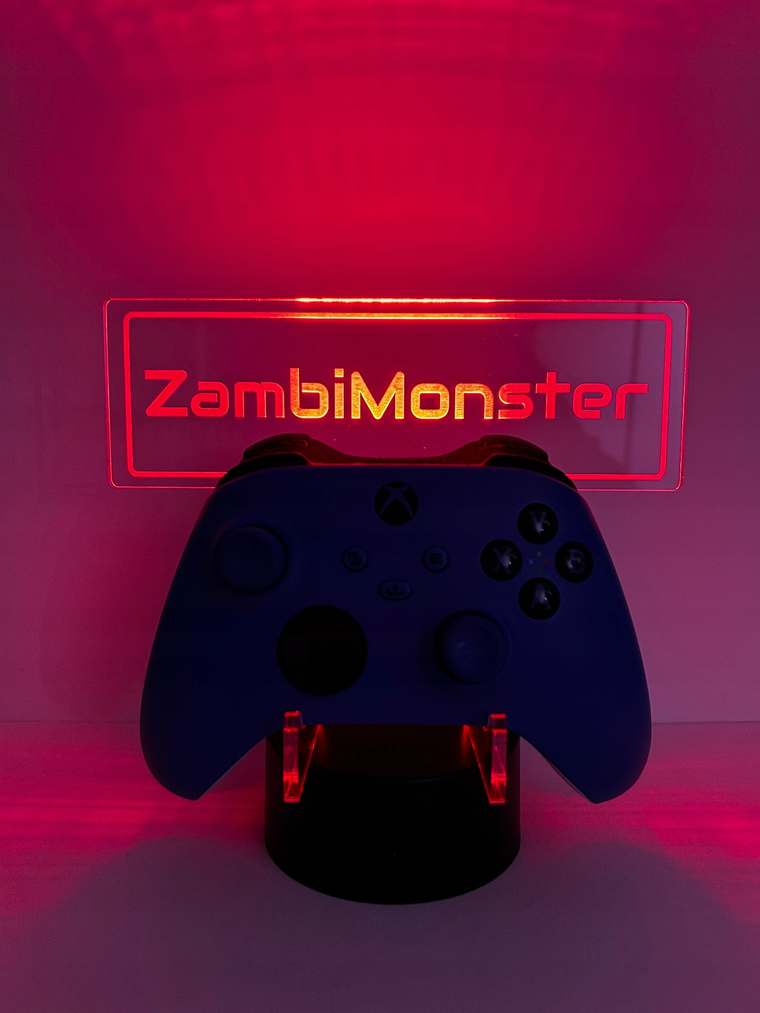 Два в одному, лампа та підставка для планшета. Персоналізовано з вашим псевдонімом гравця. - версія для однієї або двох колодок. Виготовлений з високоякісного акрилового скла на міцній основі ABS. У комплект входить пульт для зміни кольору.