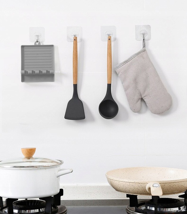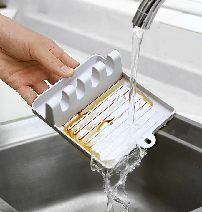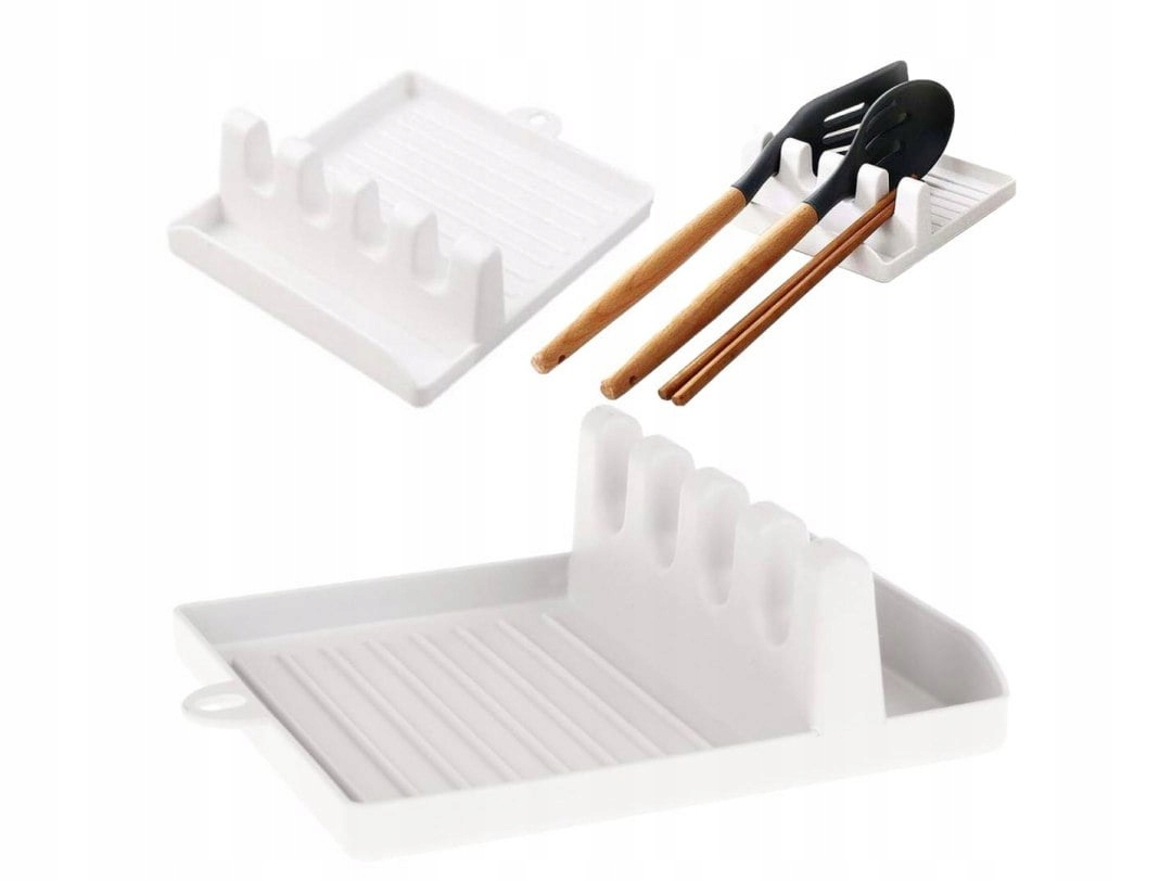 Підставка для кухонних ложок з пластику. Поставивши використаний посуд на сушарку, кухонну стільницю легше підтримувати в чистоті.