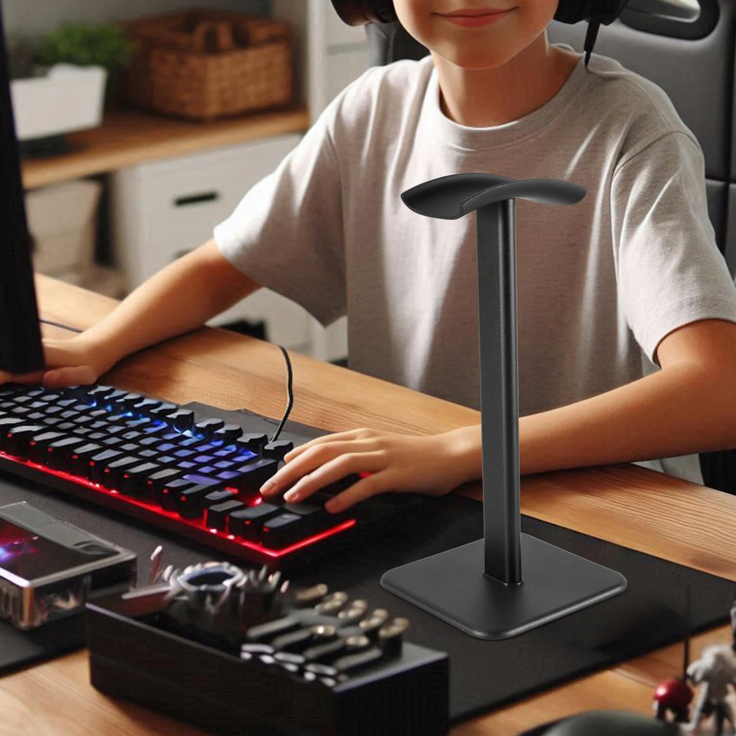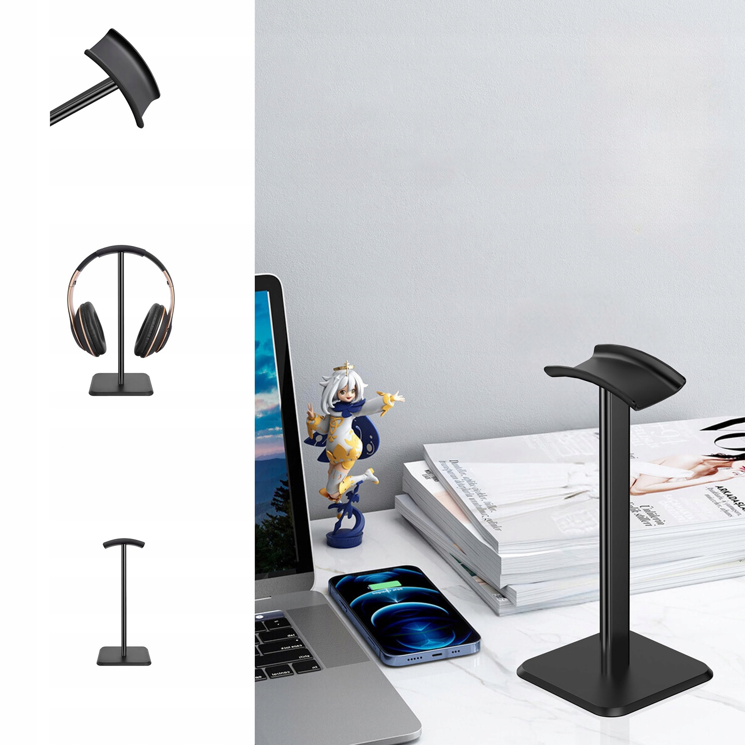 * Виготовлений із алюмінієвого сплаву та АБС-пластику, забезпечує безпечний і стабільний захист навушників і підтримує порядок на столі.