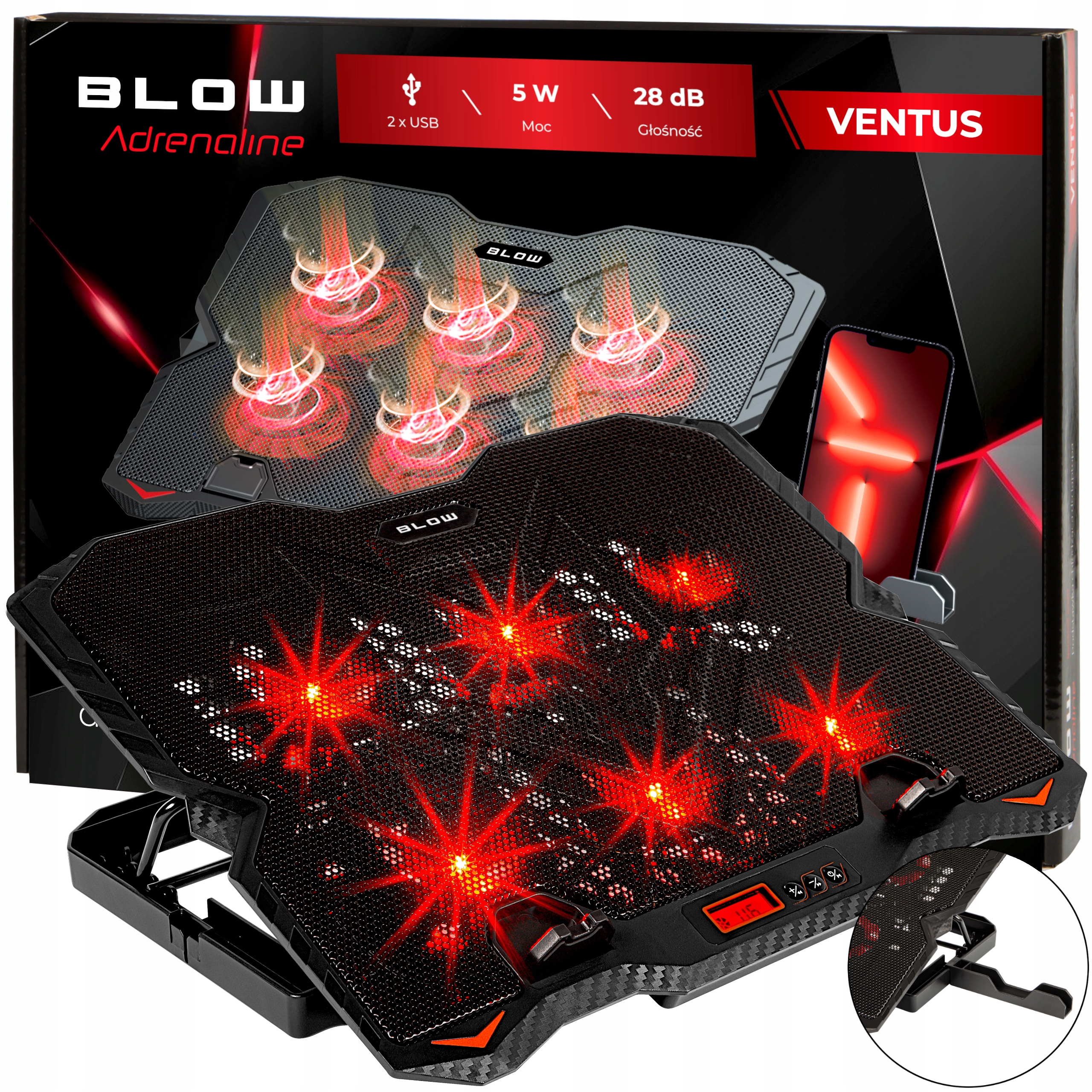 Червоне світлодіодне підсвічування, встановлене навколо вентиляторів і по периметру підставки, надає їй унікальний характер і привертає увагу кожного, хто бачить наше портативне обладнання.