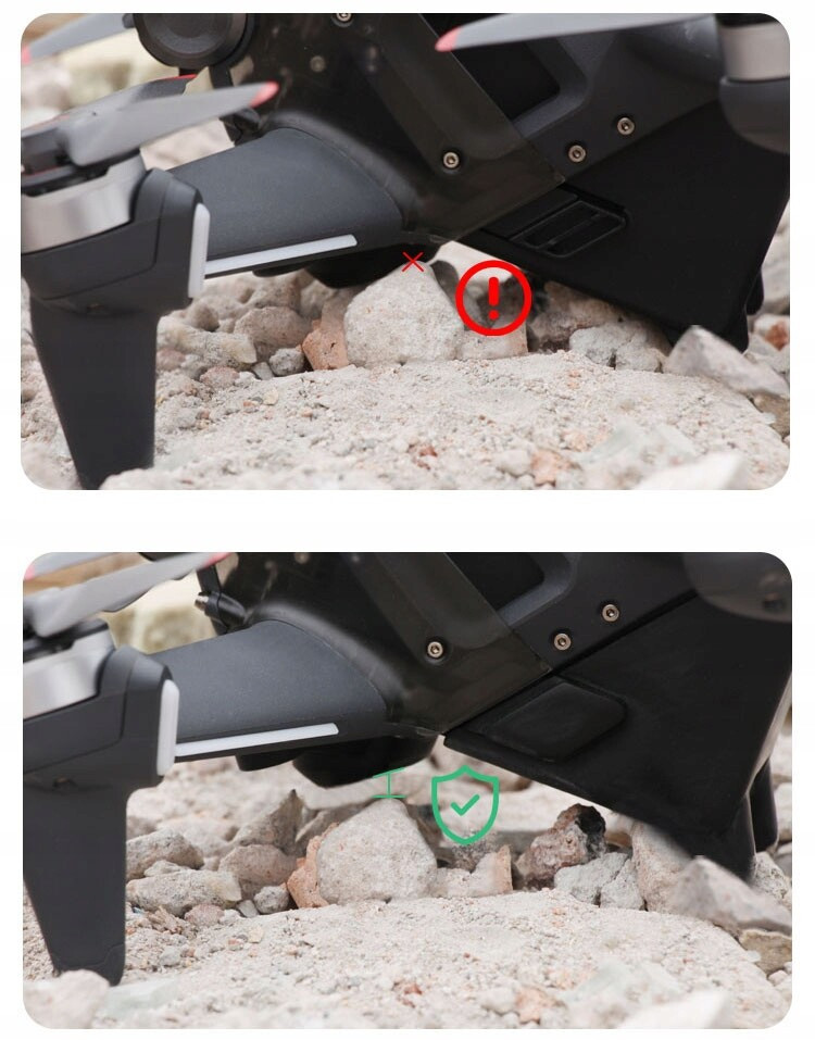 Додатковий підйом мінімізує ймовірність пошкодження підвісу під час зльоту та приземлення, оскільки заводська позиція знаходиться дуже близько до землі, що може призвести до пошкодження під час зльоту з нерівної поверхні.