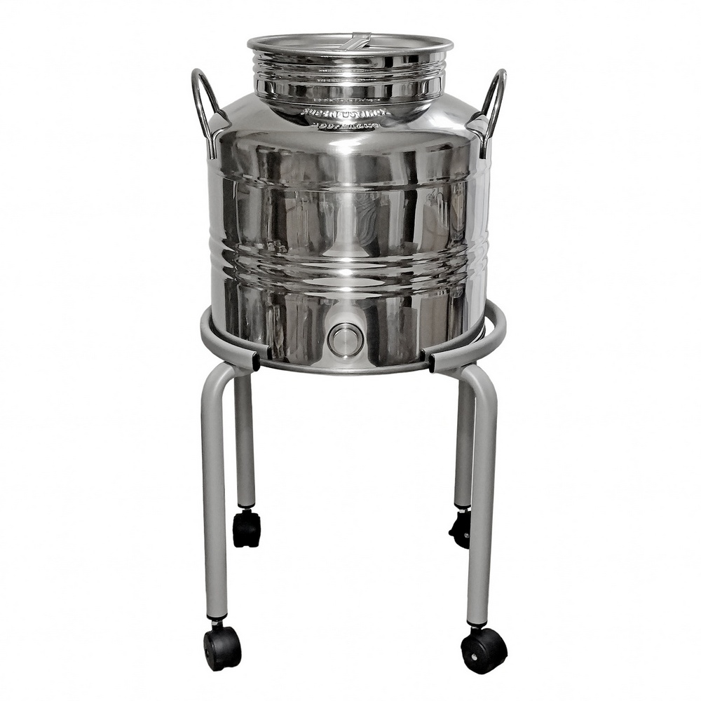Підставка на колесах для герметичної бочки з нержавіючої сталі об'ємом від 15 л до 30 л з рідиною.