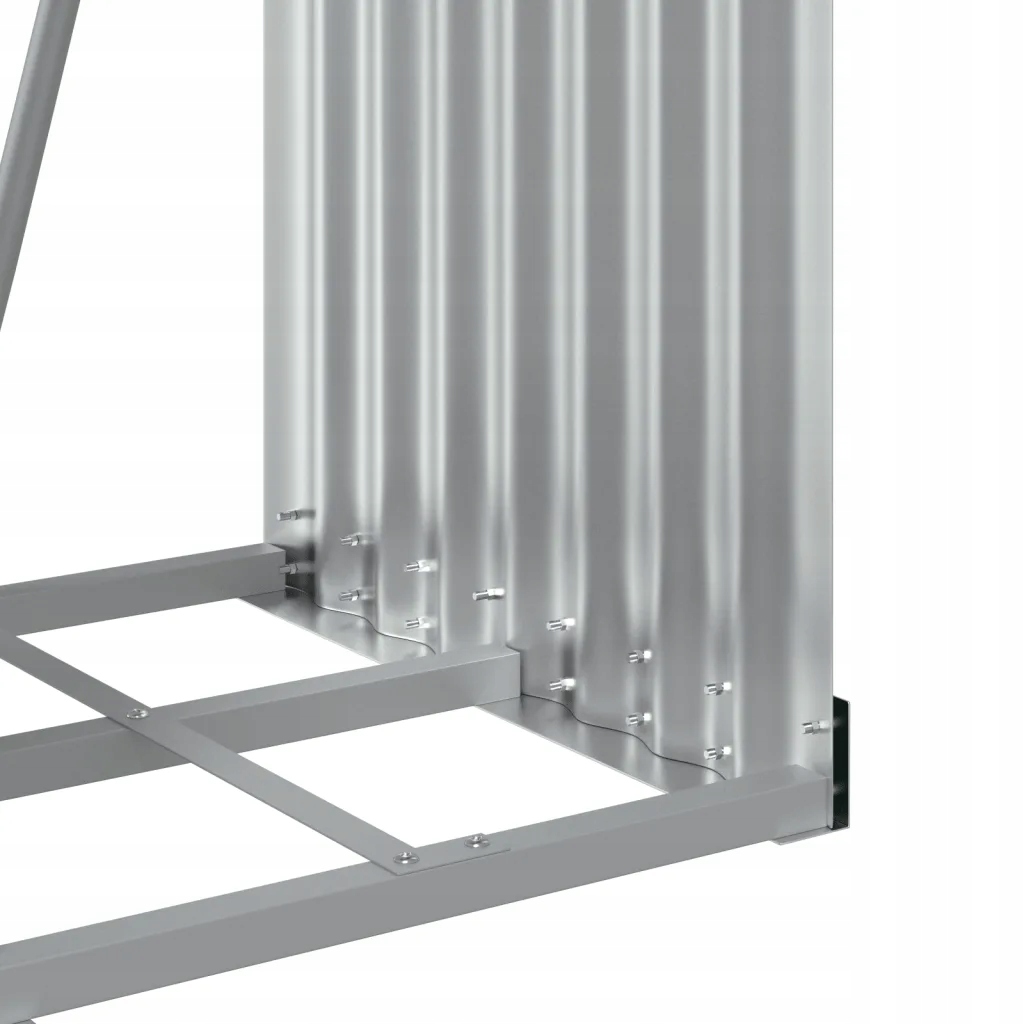 Ця міцна стійка для дрова є ідеальним рішенням для акуратного зберігання деревини. Він виготовлений з довговічного оцинкованого сталевого листа, що робить його стабільним і довговічним, ідеальним для зовнішнього використання.