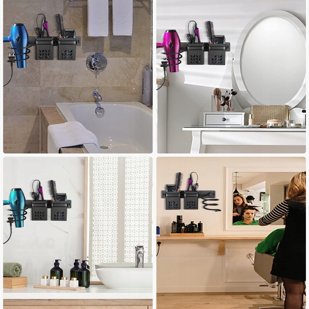 - Ви можете зберігати майже всі аксесуари для волосся, такі як фени, випрямлячі, плойки, щітки для волосся, бритви тощо в цьому настінному тримачі для фена.