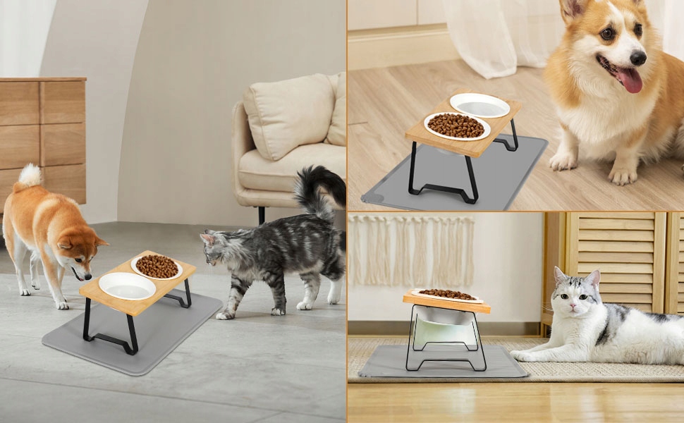 - Дерев'яна рамка кішкової чаші виробляється в збалансованому і виготовленому з натурального бамбука. Керамічна чаша з котячою їжею легко розібрати та чистити, стійкий до розвитку бактерій і ефективно запобігає утворенню чорних підборіддя.