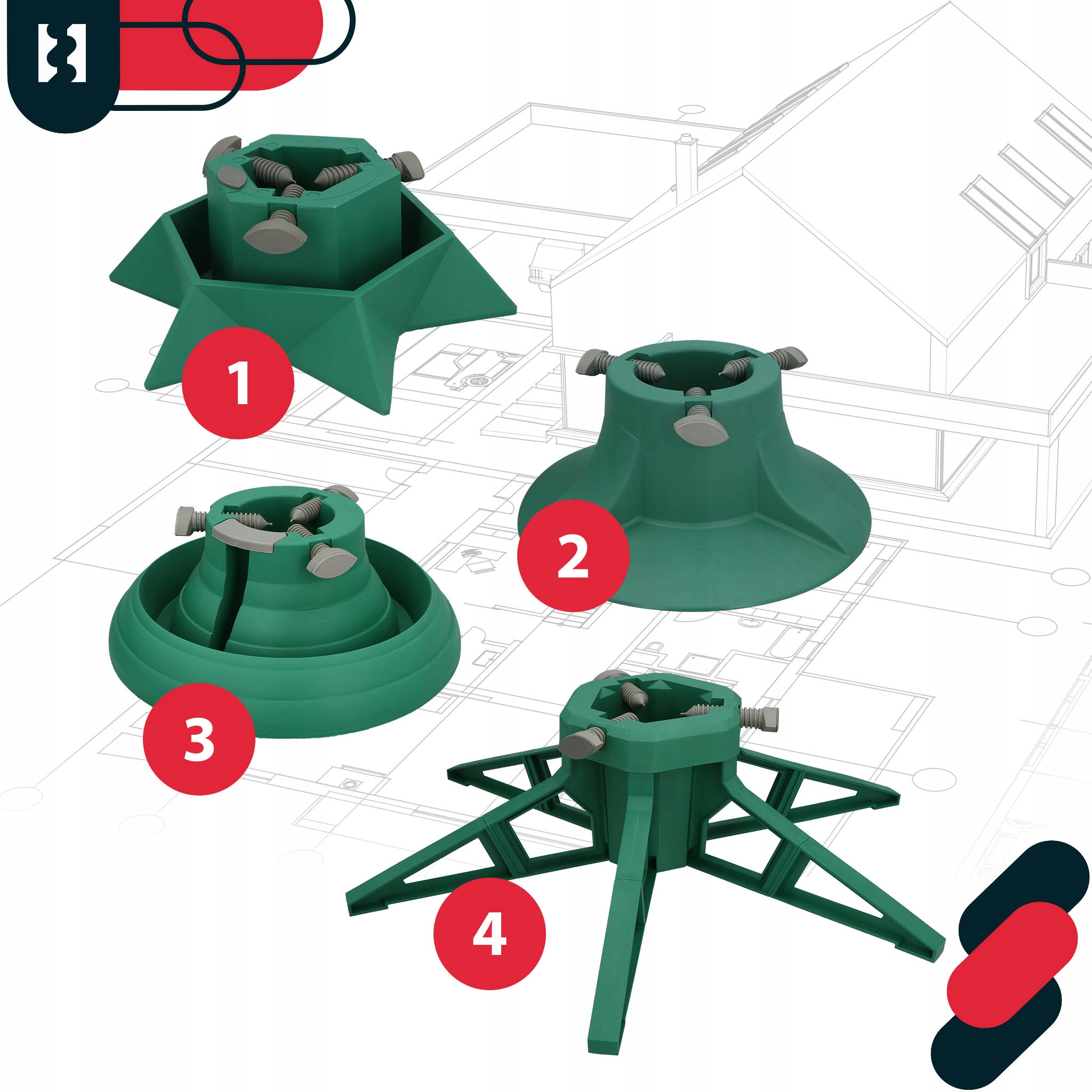 Підставка виготовлена з міцного пластику з високою стійкістю до тріщин і деформацій. Завдяки цьому він чудово витримує вагу навіть великих розлогих дерев, зберігаючи стійкість протягом усього курортного сезону. Міцна конструкція гарантує тривале використання - просто очистіть підставку після сезону та зберігайте її до наступного свята.