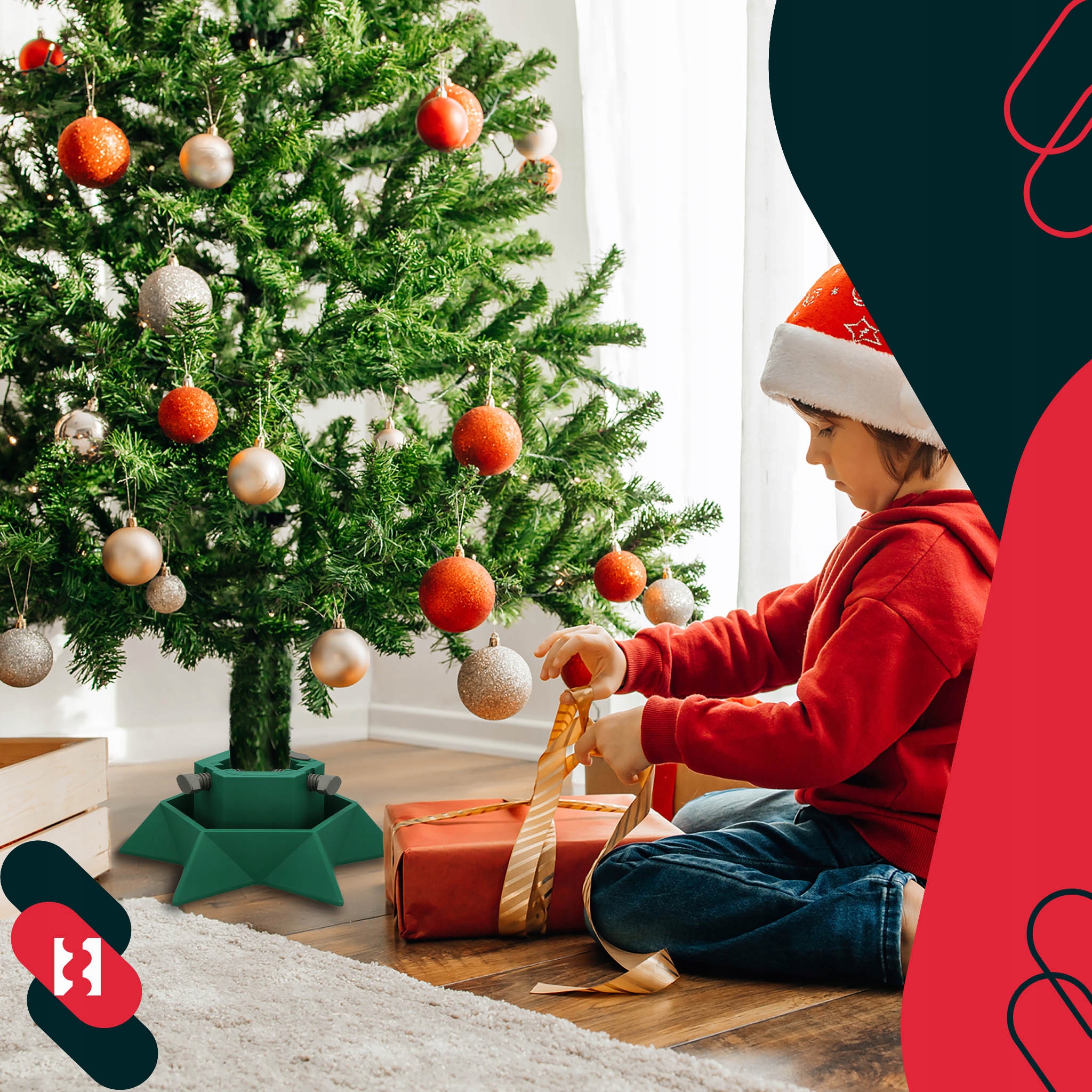 Завдяки малій вазі та компактним розмірам підставка дуже зручна та проста у використанні. Вона дозволяє швидко зібрати ялинку без використання інструментів – просто помістіть стовбур у тримач та затягніть кріплення. Після закінчення сезону відпусток розібрати та зберегти його зовсім не проблема.