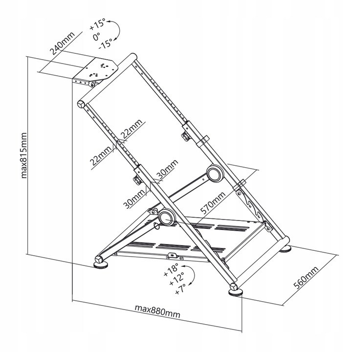 - Нахил лотка для педалей: + 18 ° // + 12 ° // + 7 °