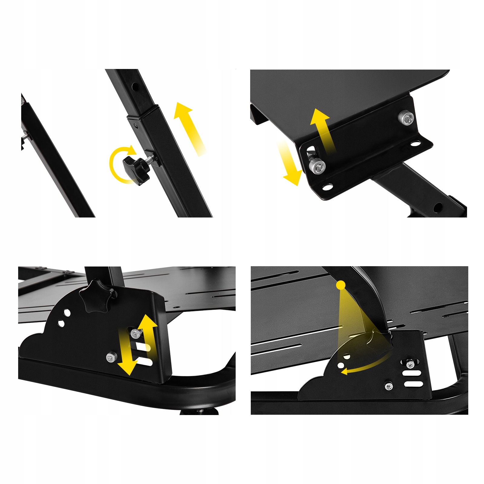 Створити цю підставку для гоночного керма з її аксесуарами – це просто. Просто під’єднайте всі сталеві труби, кріплення коліс і важелі, а потім використовуйте гвинти, щоб зафіксувати потрібне положення.