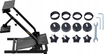 Ця підставка на колесах сумісна з колесами Logitech G25, G27, G29, усіма доступними на ринку колесами Fanatec і Mad Catz із попередньо просвердленими отворами. До тримача також можна прикріпити інші колеса.