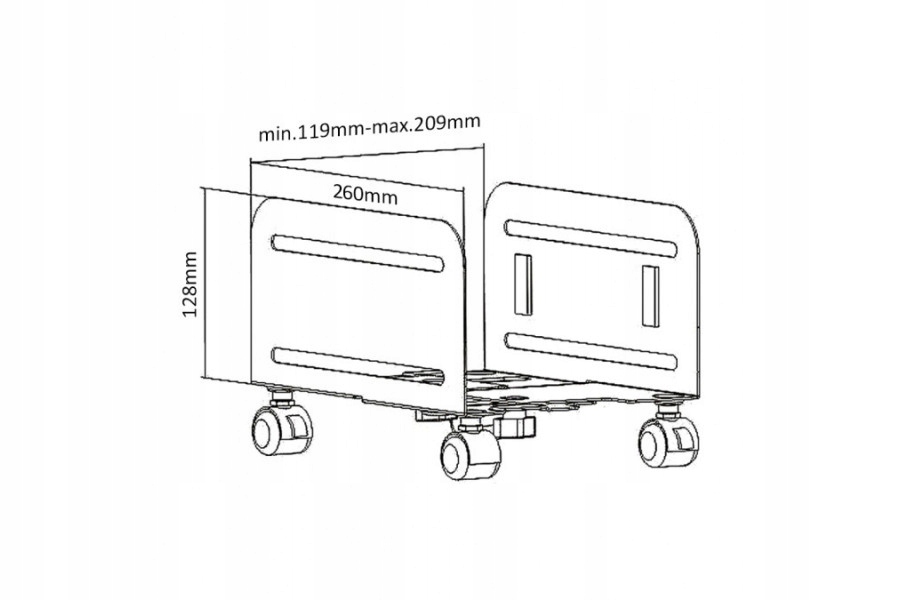 Завдяки регулюванню ширини від 119 мм до 209 мм візок можна адаптувати до більшості комп’ютерів.