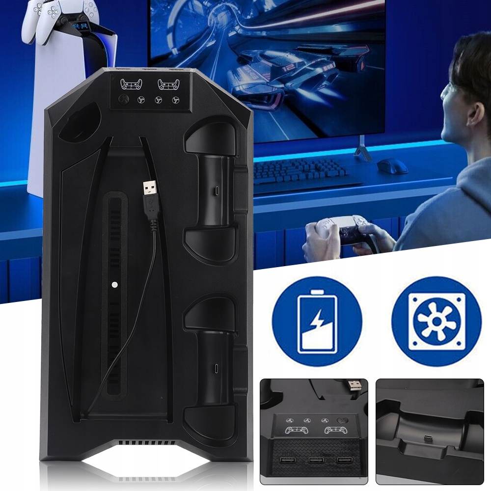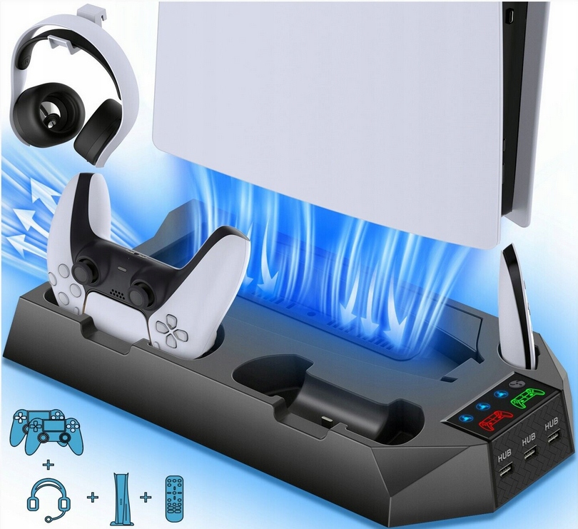 Підставка PS5 Slim/pro з вентилятором, підставка із зарядною станцією