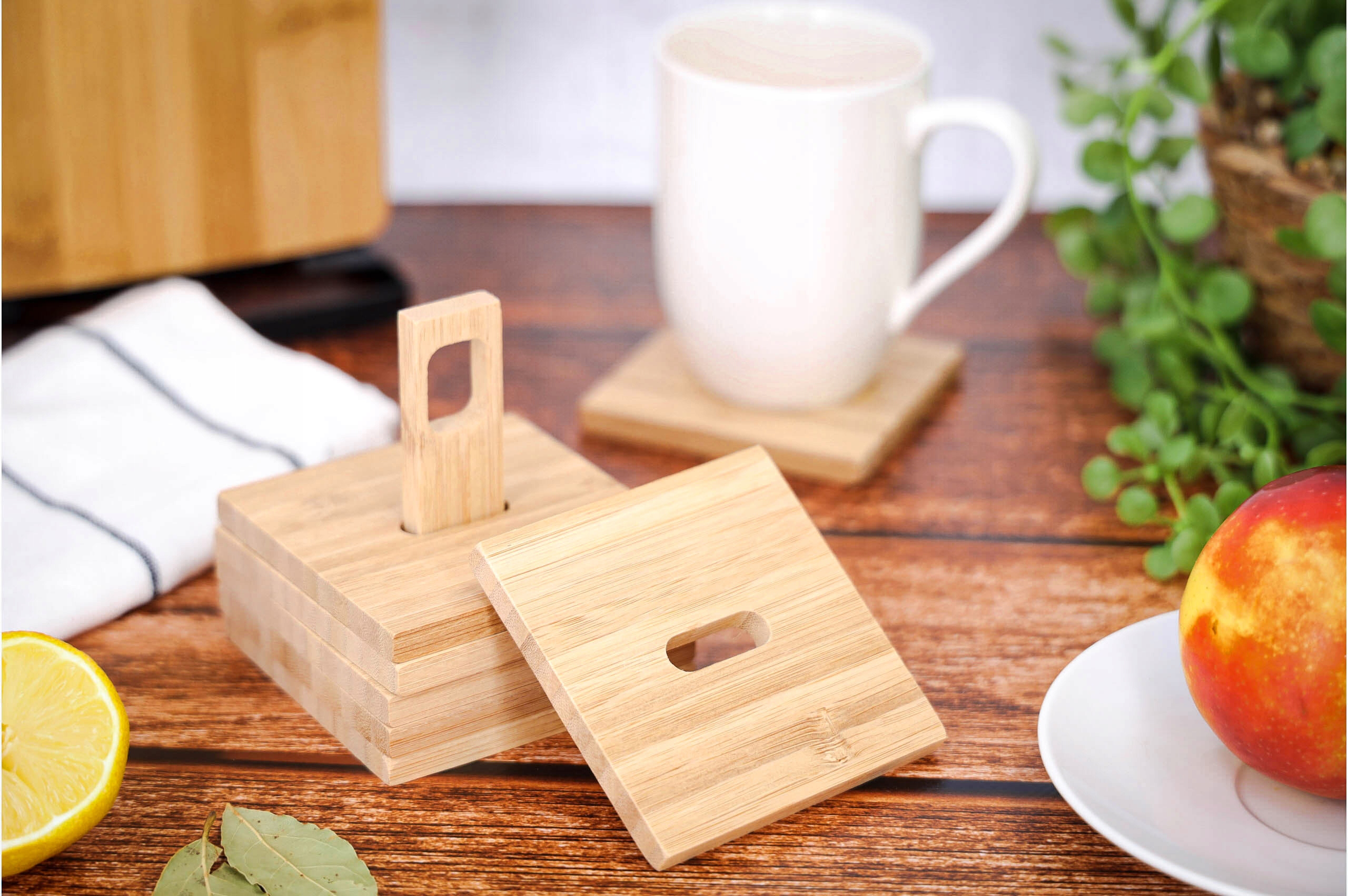 Бамбукова підставка під кухоль і склянку в підставці, набір з 6 бамбукових підставок.
