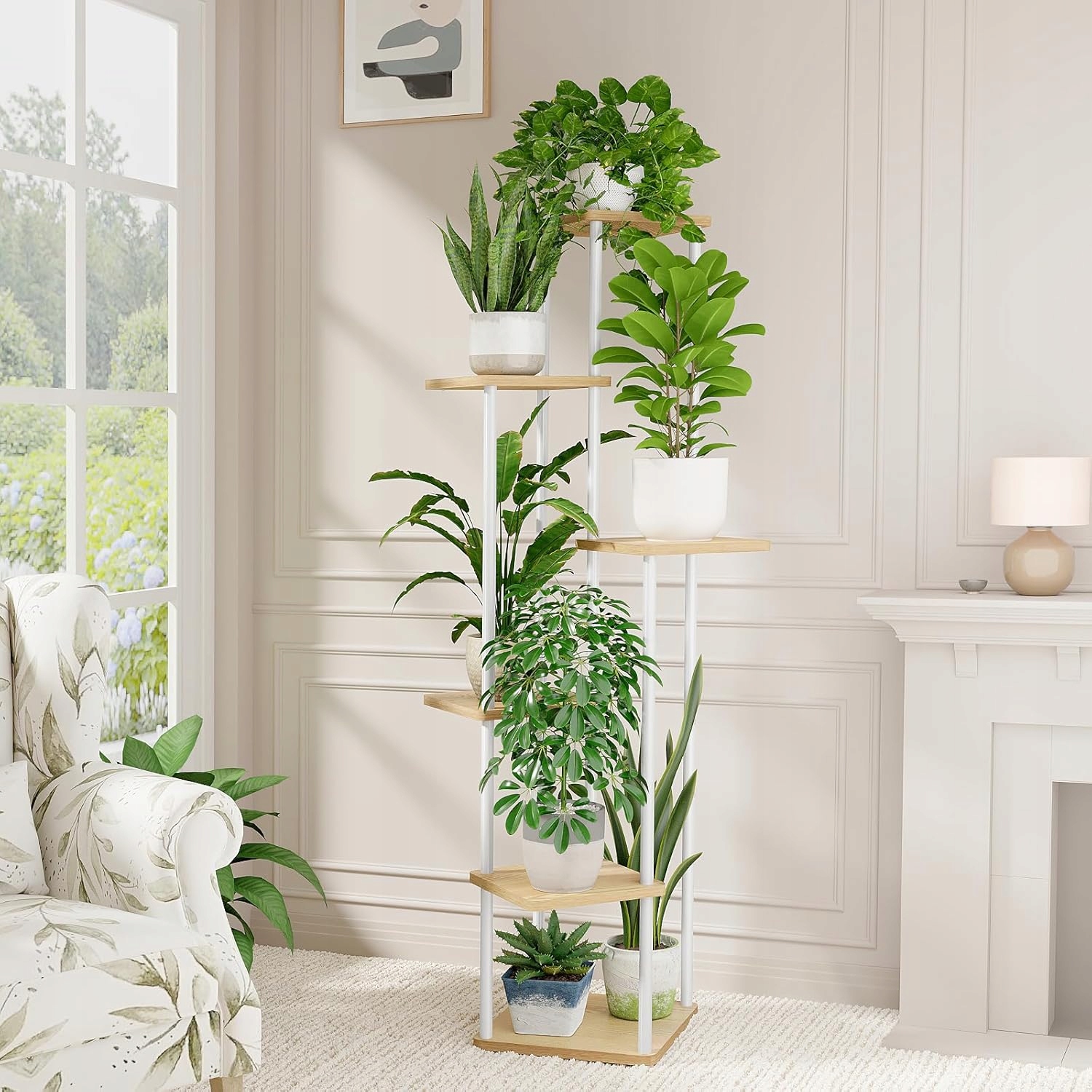 Завдяки своїй вертикальній структурі підставка дозволяє максимально збільшити простір - рослини краще отримують сонячне світло, а підлога залишається вільною. Ідеальне рішення для невеликих квартир та інтер’єрів.