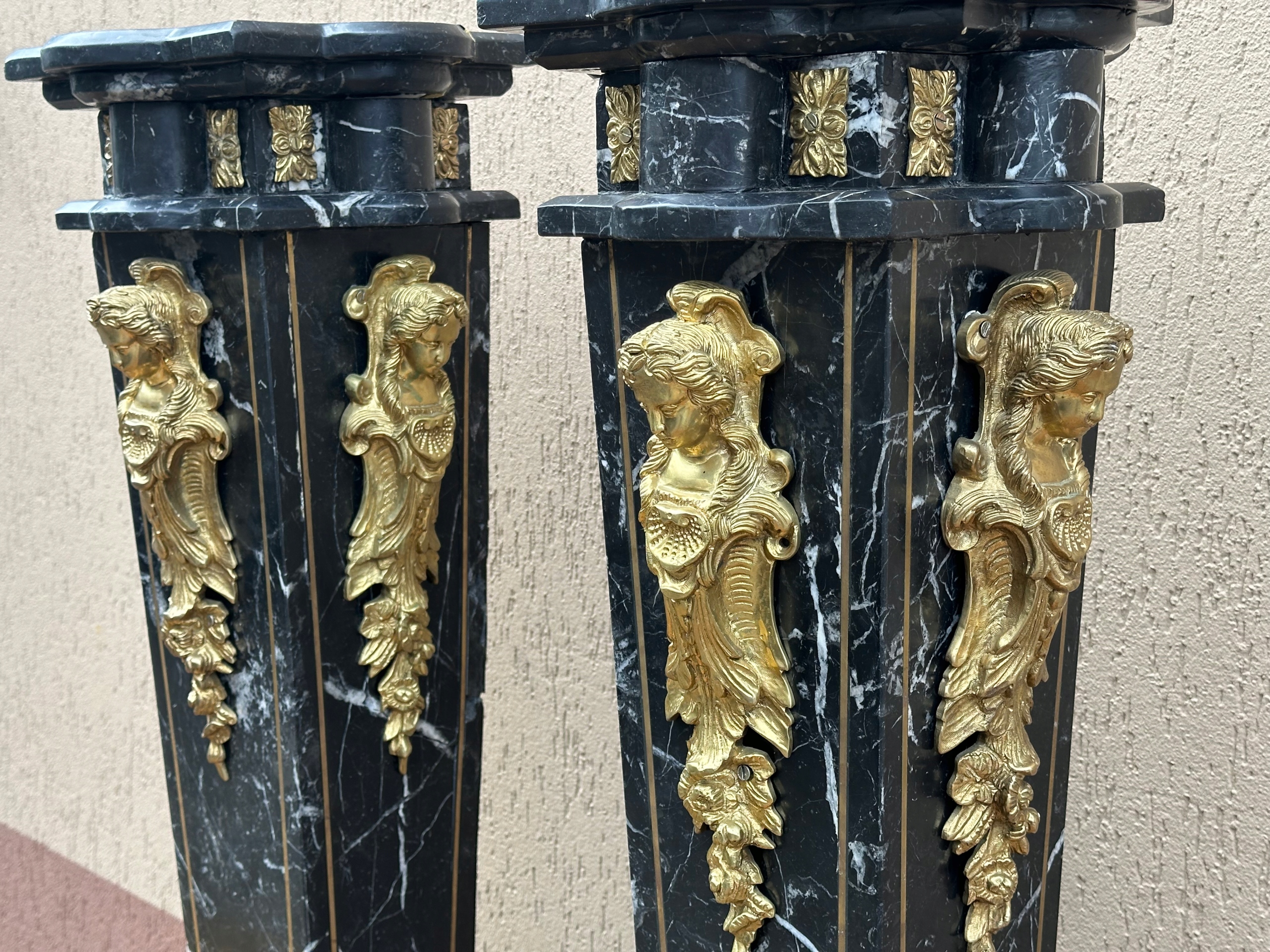 ПІДСТАВКА ДЛЯ КВІТІВ КОЛОНА З МАРМУРУ З ЛАТУНЮ, ЧОРНОГО ТА ЗОЛОТА