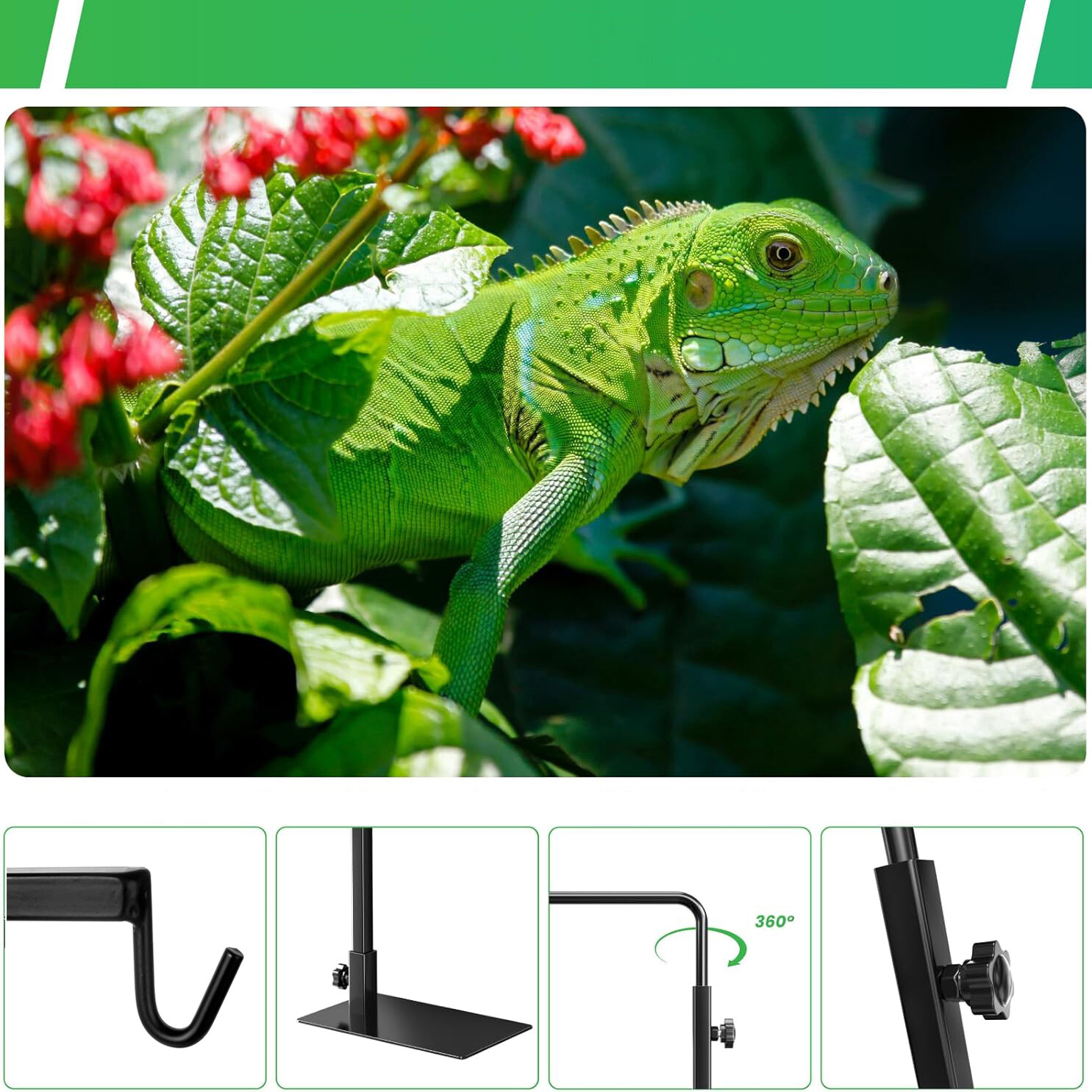 🐢 Міцний і безпечний: Каркас лампи для рептилій виготовлено з високоякісних металевих матеріалів, які не іржавіють, не деформуються, стійкі до іржі, міцні та довговічні та можуть використовуватися протягом тривалого часу. З гачком, можна використовувати для фіксації проводів.