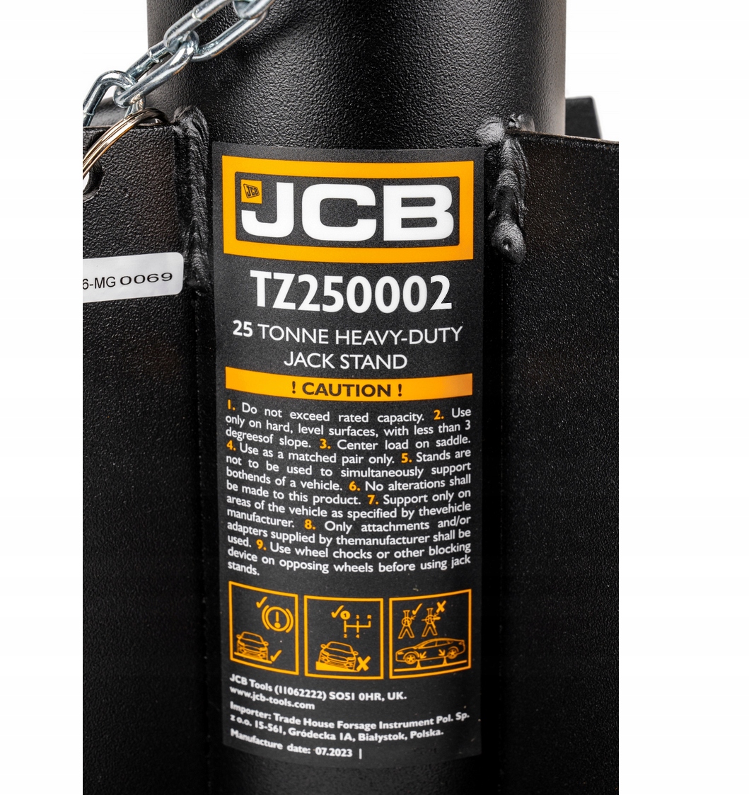 ✅ Універсальне використання - завдяки вантажопідйомності до 25 тонн опора JCB ідеально підходить для підтримки важких транспортних засобів, машин або конструктивних елементів, що робить його незамінним у професійних майстернях і на будівельних майданчиках