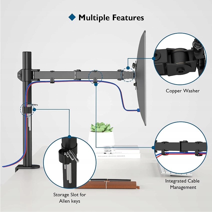 Кріплення для одного монітора BONTEC є ідеальним вибором для оптимізації ваших ігор або офісних налаштувань, досягнення ідеального положення монітора, звільнення місця на робочому столі та налаштування ваших налаштувань.