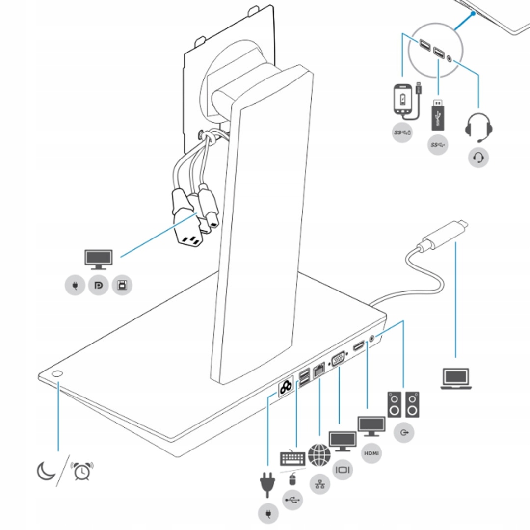 Док-станція Dell DS1000 з основою монітора відповідає вибраним ноутбукам Dell, робочими станціями, планшетам та іншими сумісними пристроями виробників, крім Dell, з інтерфейсом USB-типу C ™. Легке підключення до дисплеїв, принтерів, мишей, клавіатури та аудіо -пристроїв через діловий док -станцію Dell DS1000 з базою монітора. Він також підтримує такі функції, як Wake на LAN, PXE Boot, передаваючи MAC -адресу та оновлення програмного забезпечення, у випадку використання послідовних систем Dell.