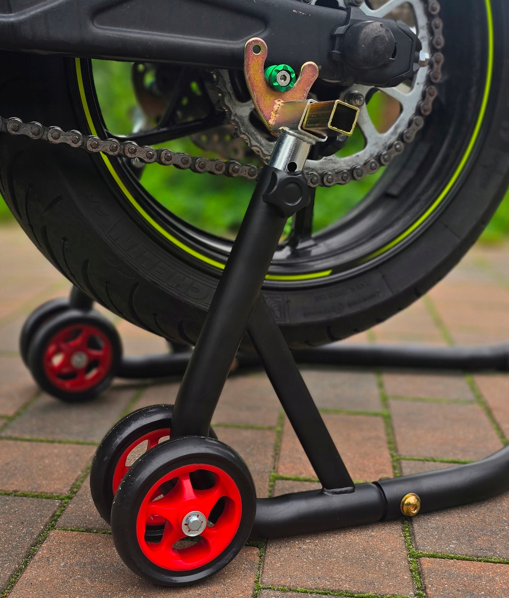 ✅ Економія місця - мотоцикл можна стабільно розмістити на підставці, напр. близько до стіни.