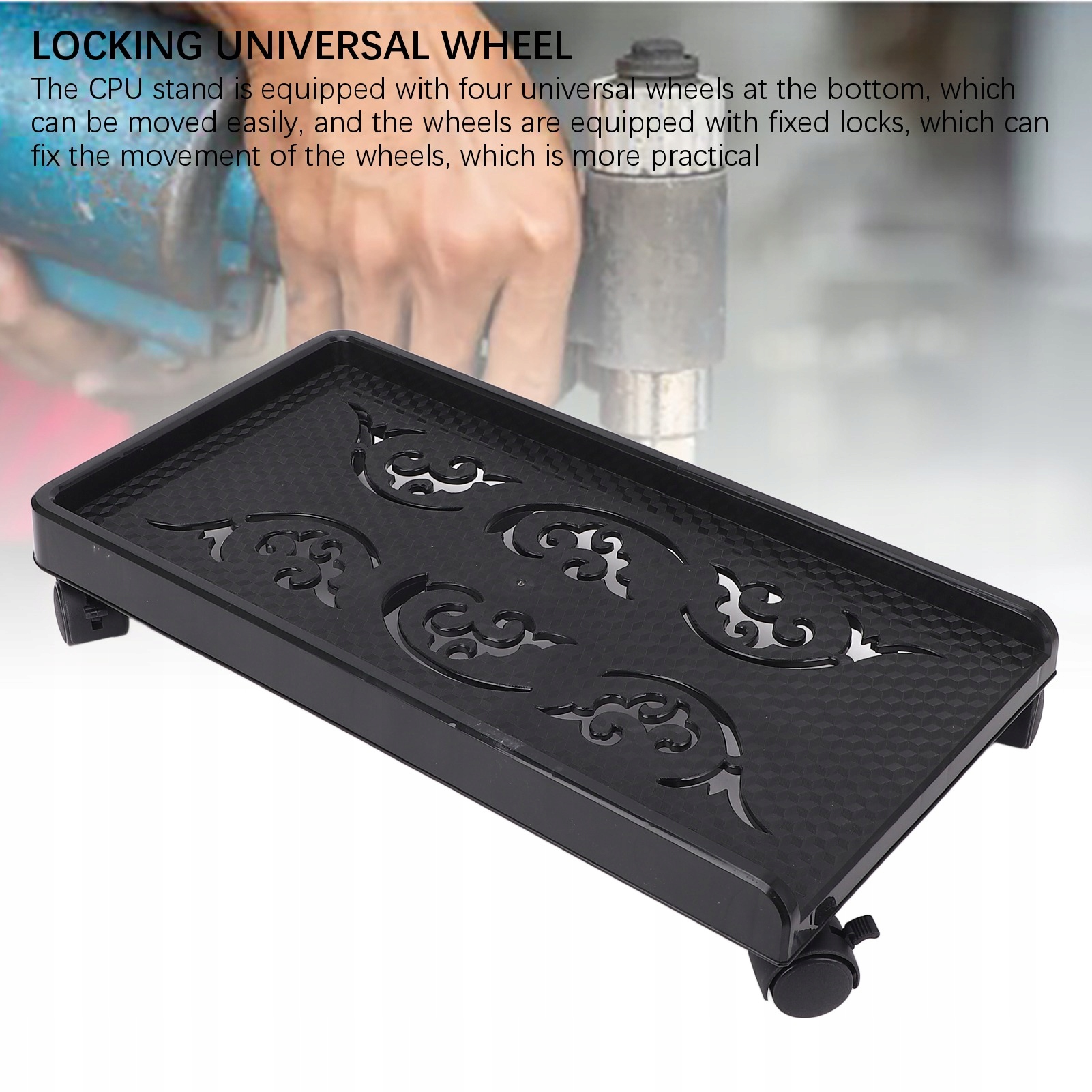 1、ВЕЛИКИЙ РОЗМІР: підставка для комп’ютера має великий розмір 460x245x80 мм, що в основному відповідає несучій здатності всіх хостів та інших предметів 2、УНІВЕРСАЛЬНЕ БЛОКУВАННЯ КОЛІС: підставка для процесора оснащена чотирма універсальними колесами внизу, які можна легко переміщати, а колеса оснащені фіксованими замки, які можуть фіксувати рух коліс, що є більш практичним 3、 СИЛЬНЕ НАВАНТАЖЕННЯ: Мобільний тримач ЦП може витримати вагу близько 30 кг, який можна повністю застосувати до всіх ящиків для інструментів, наборів, хостів, коробок, горщиків для квітів, полиць, мисок для домашніх тварин та інших сценаріїв 4、ЛЕГКЕ ЗБИРАННЯ ТА МИТТЯ: покупець збирає лише чотири нижні колеса за допомогою на них зарезервовані отвори. Протирати теж дуже зручно - просто протріть забруднення серветкою.