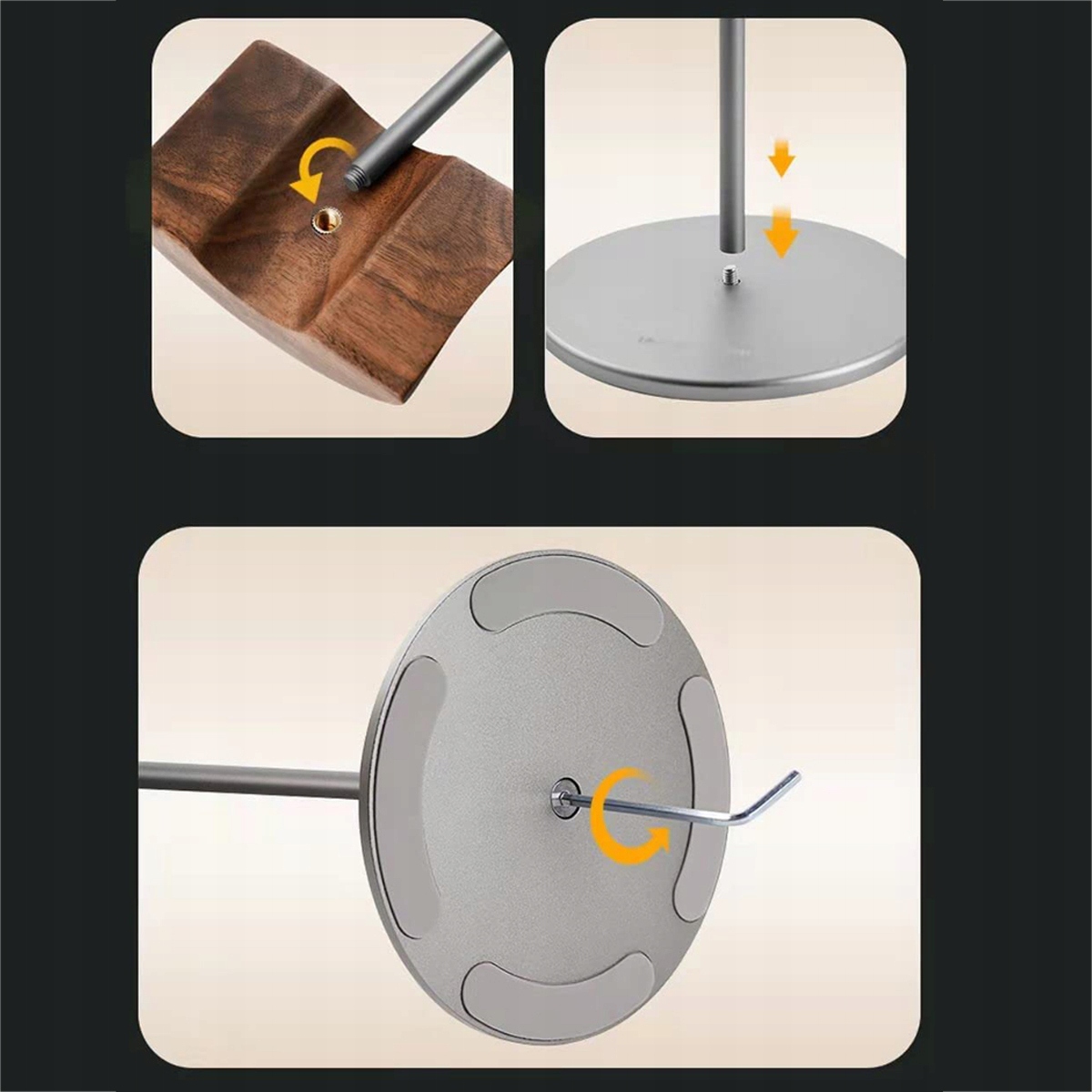 Тримач для навушників із натурального чорного горіхового лотка та високоякісного металу, що забезпечує стабільність і сумісність із більшістю гарнітур.