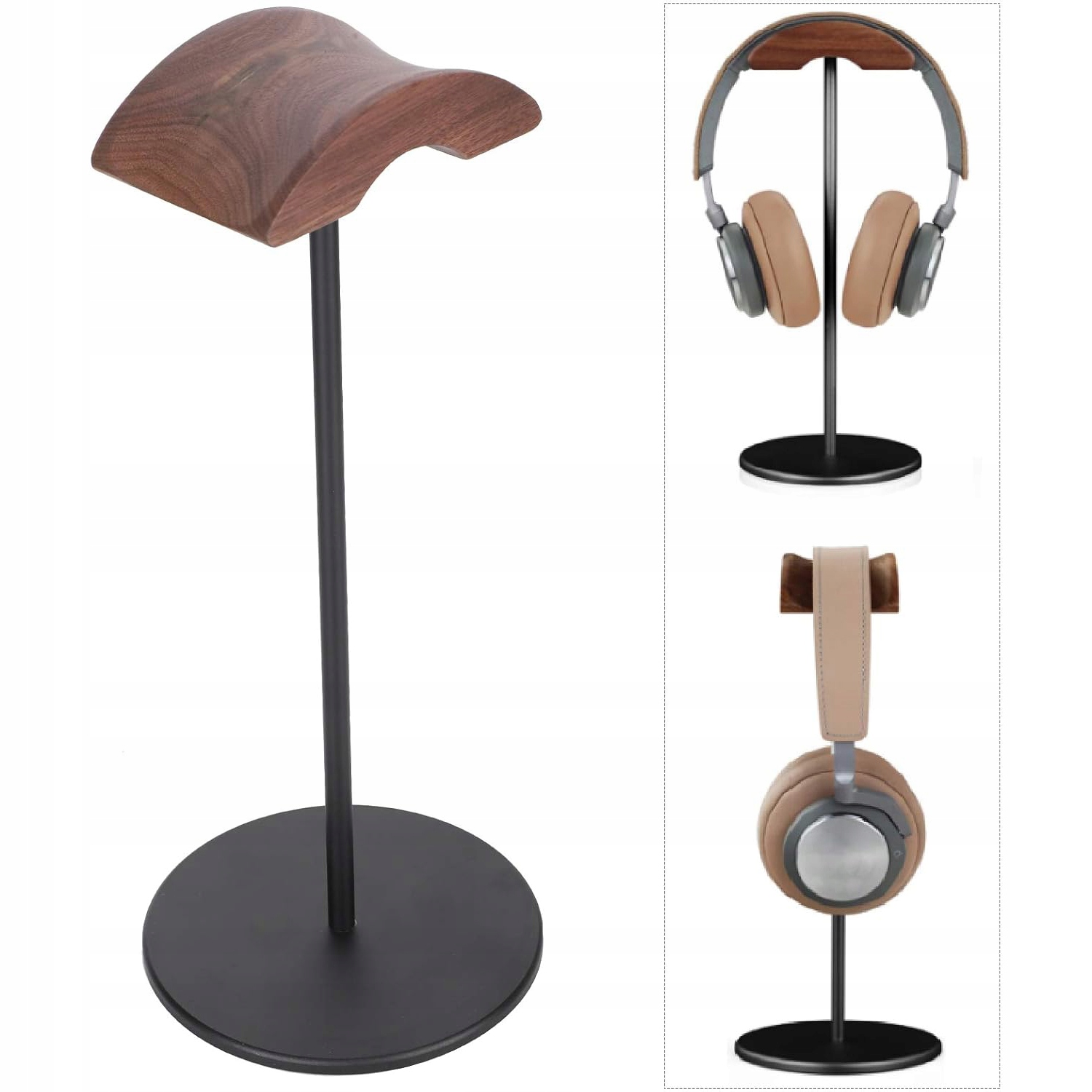 Основний корпус виготовлений з натурального горіхового дерева та високоякісного металу, що забезпечує стійку та стабільну опору, зберігаючи елегантну текстуру. Він сумісний із більшістю моделей навушників, що робить його стильним доповненням як до повсякденного використання, так і як прикрасу столу.