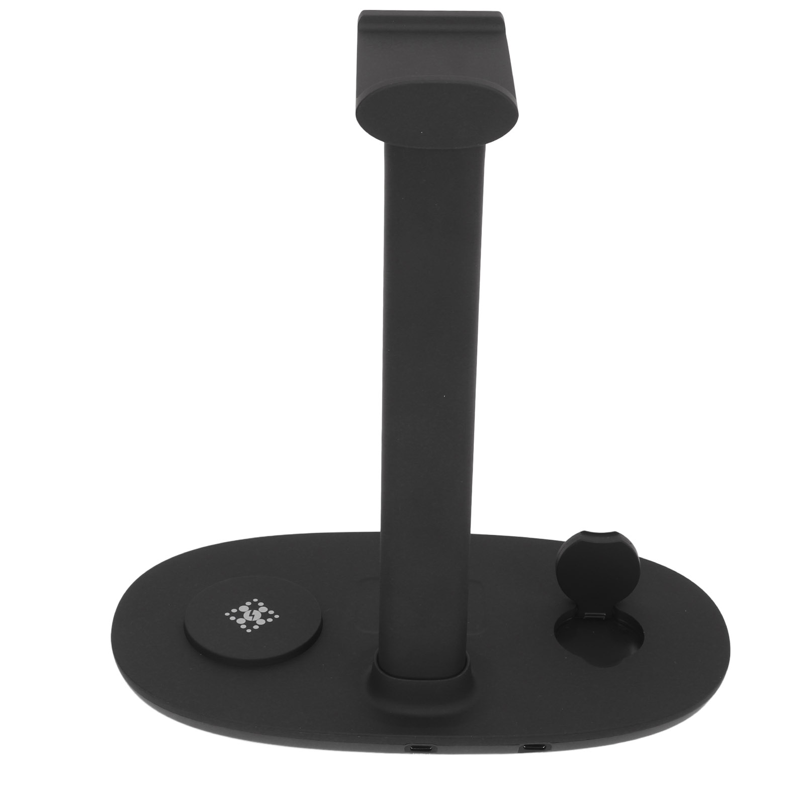 Підставка для навушників 4 в 1 із бездротовим зарядним пристроєм 15 Вт Гарнітура Підставка для заряджання Станція Тримач для телефону IOS Qi для навушників IOS для IWatch Black