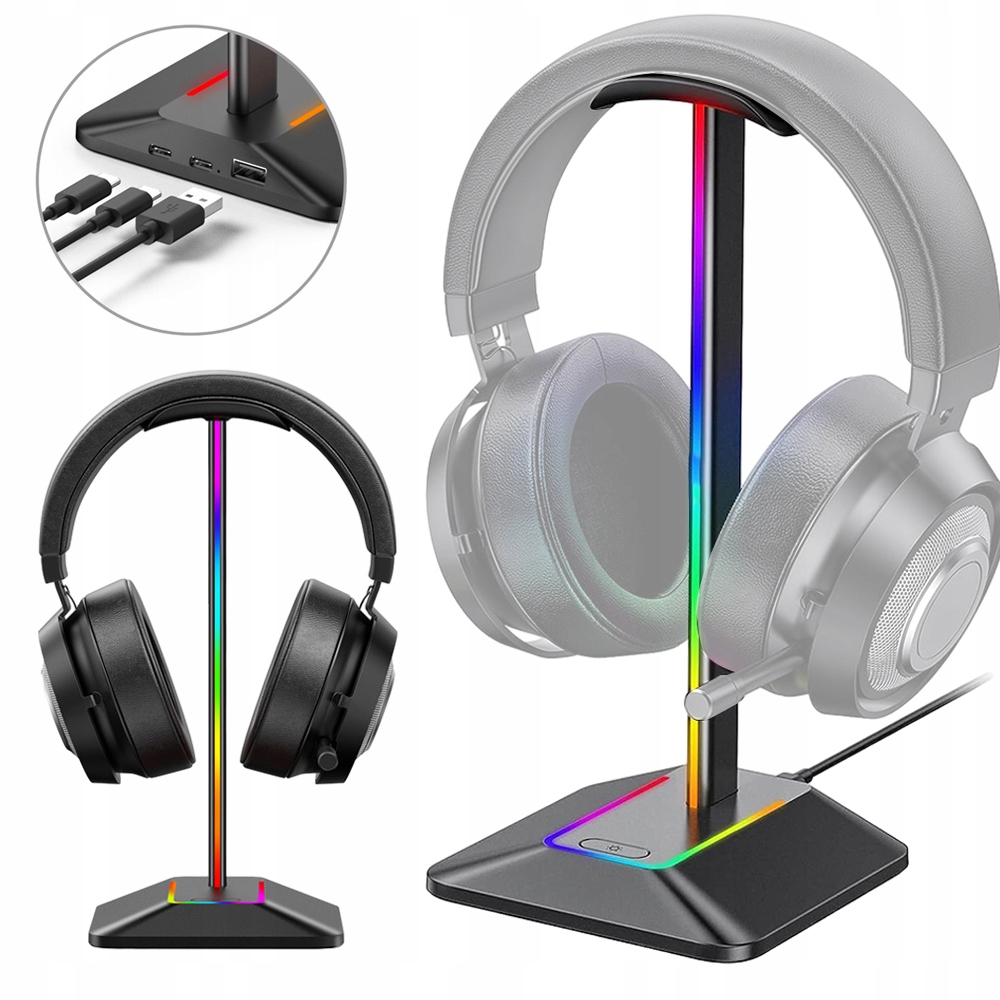 ТРИМАЧ ДЛЯ НАВУШНИКІВ RGB, АЛЮМІНІЄВИЙ ПРОТИКЛИЗКИЙ ПОРТ USB C ТА USB