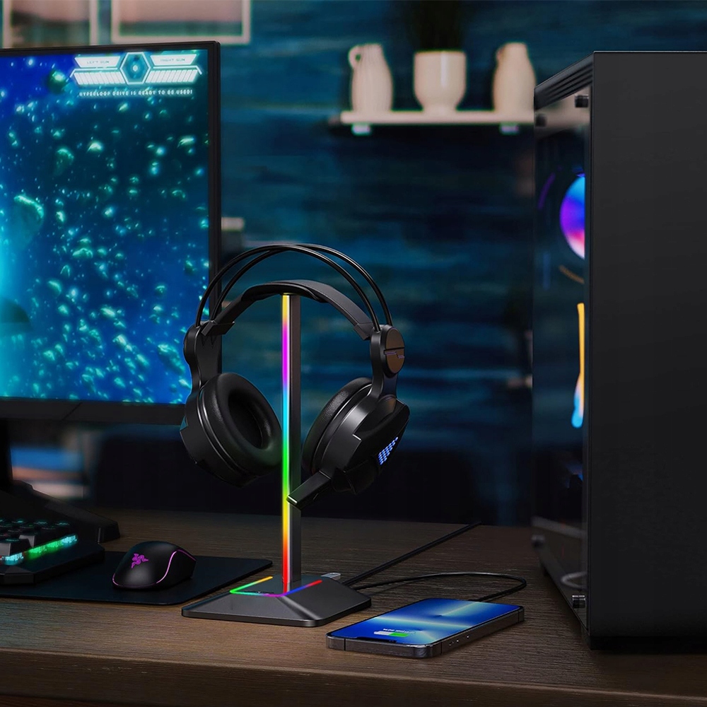 ПІДСТАВКА ДЛЯ НАВУШНИКІВ RGB З ПОРТОМ ЗАРЯДКИ USB TYPE-C 7 РЕЖИМІВ ПІДСВІТЛЕННЯ